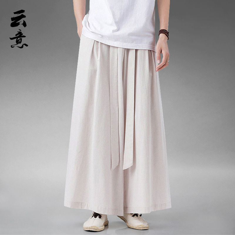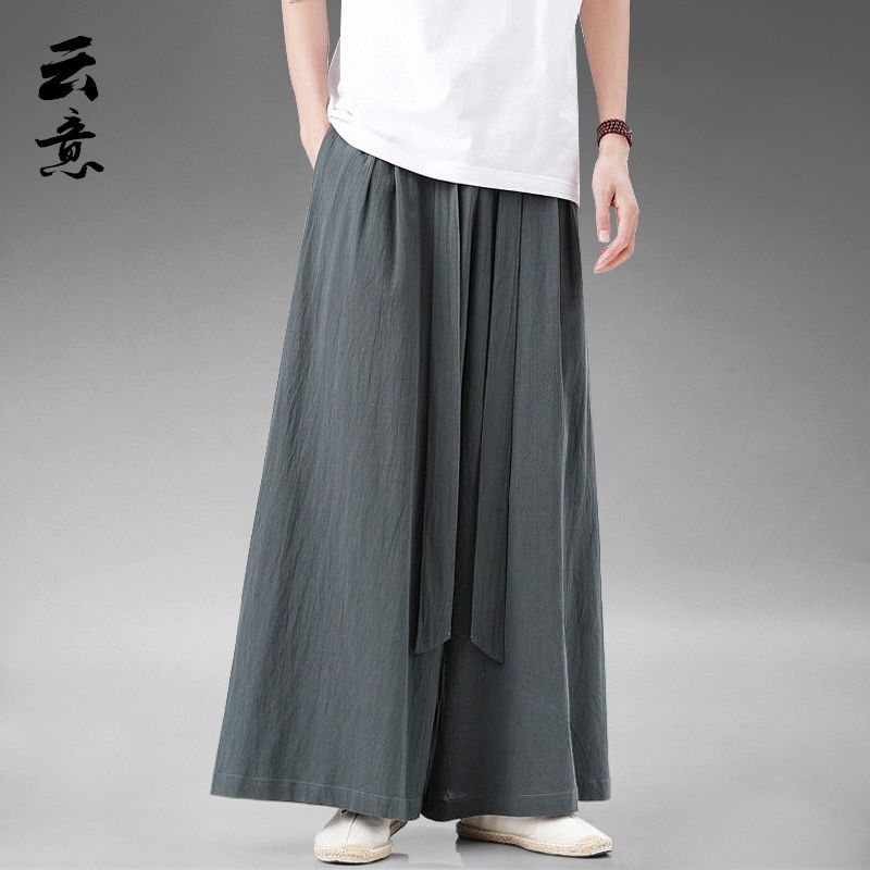 Китайский элемент китайский стиль песни брюки из ледяного шелка юбка ханьский костюм мужской костюм из ледяного шелка повседневные брюки ретро стиль дзен широкие брюки