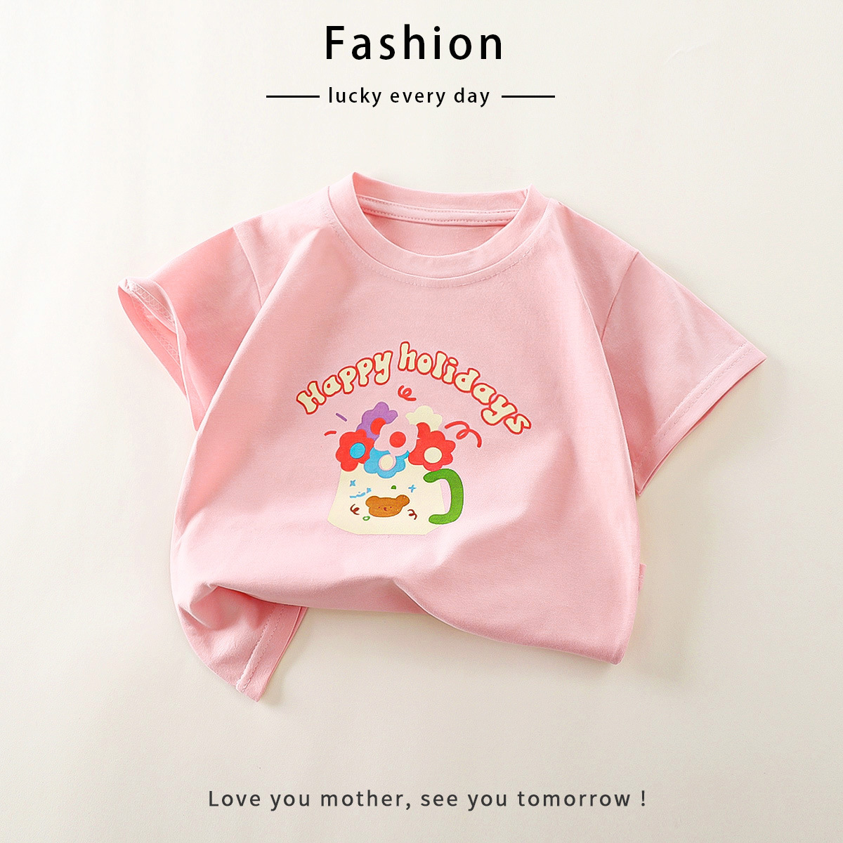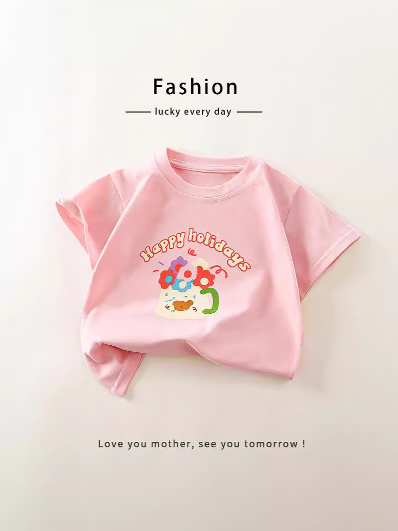 Детская летняя футболка из чистого хлопка с короткими рукавами, новый стиль, 25 лет, футболка с короткими рукавами для маленьких девочек, милый одиночный топ с короткими рукавами для девочек, детская одежда