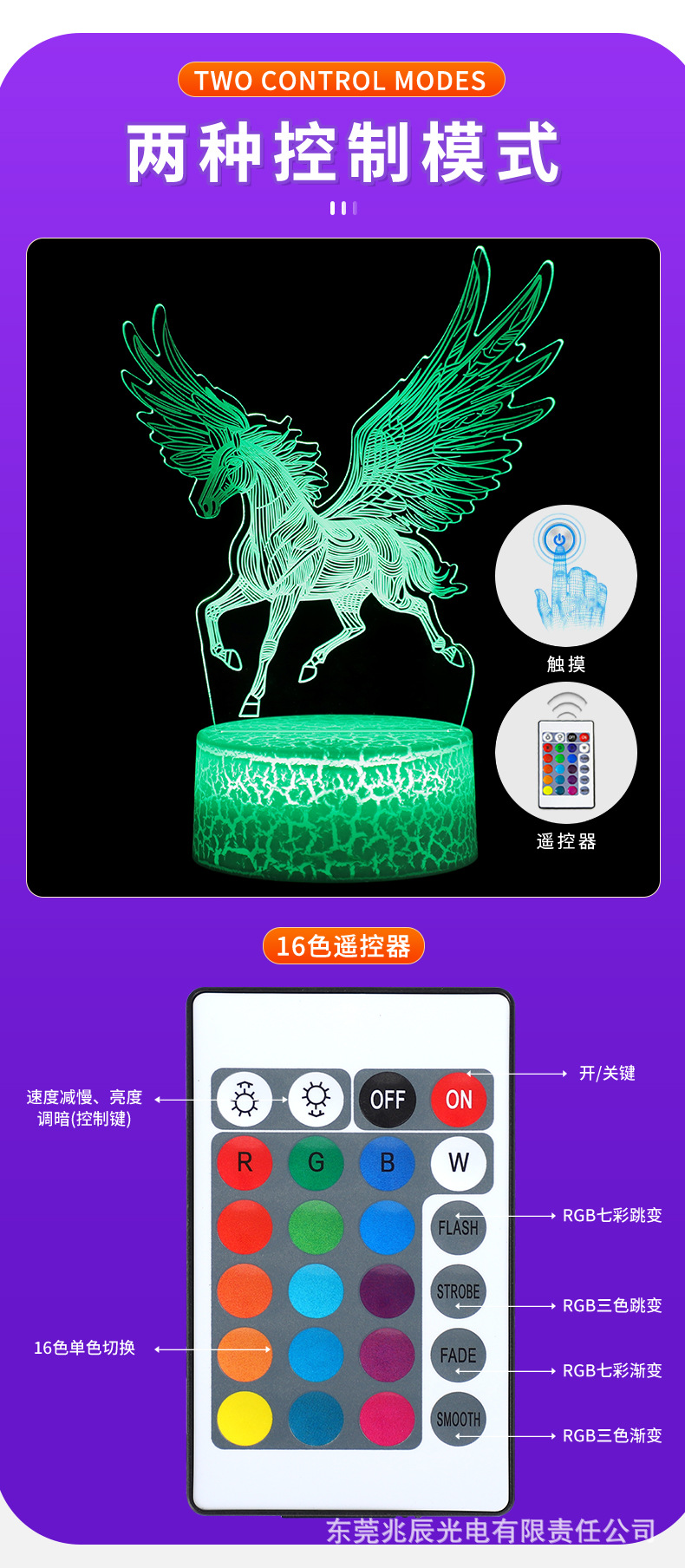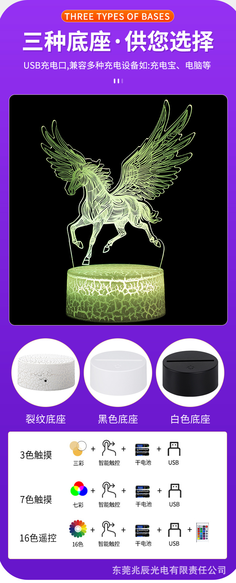 Источник производителя 3d ночной свет база usb трехцветный одноцветный сенсорный пульт дистанционного управления красочная батарея заряда трещины базы