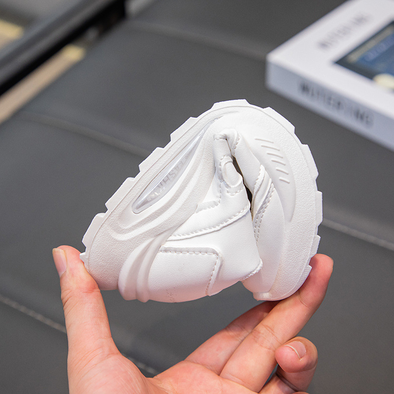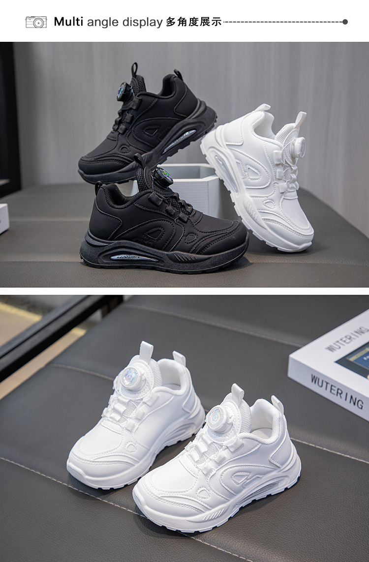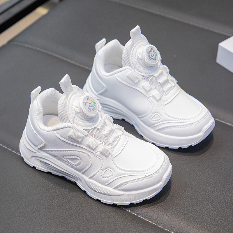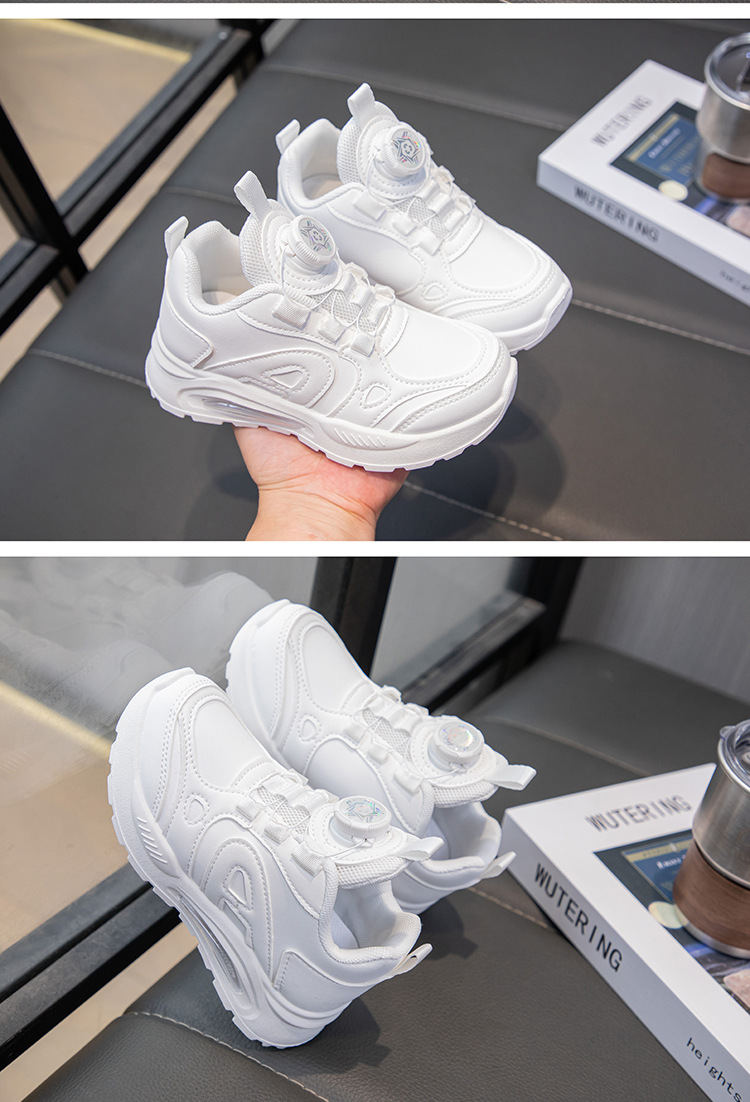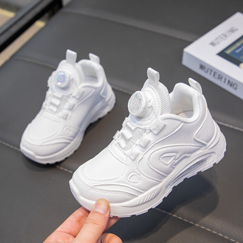 Новинка осени 2024, детская обувь, оптовая продажа, однотонная спортивная обувь для мальчиков, белые туфли высокого качества с поворотной пряжкой для девочек
