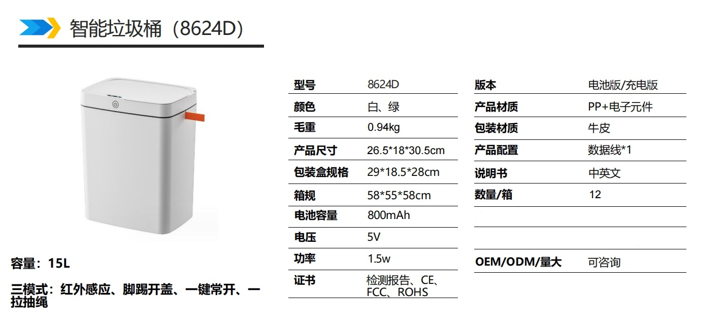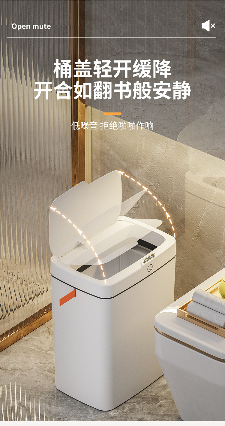 Безприкосновение к умному открытию мусорного бака Автоматическая упаковка умное мусорное ведро для туалета