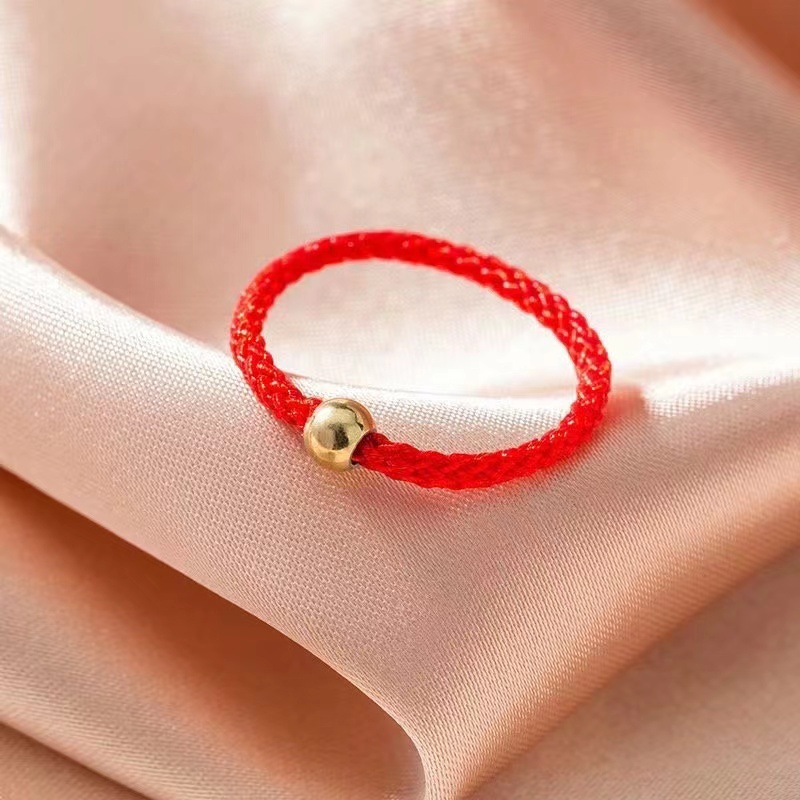 Маленькое кольцо с черной нитью и золотыми бусинами в стиле TikTok для женщин, пары или лучшего друга, плетеное кольцо с красной нитью Little Red Book.