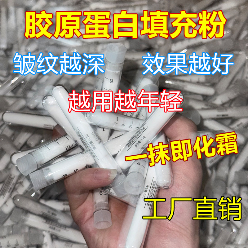 Коллагеновый наполнитель в порошке для устранения носогубных складок, придания объема обвисшим участям лица, подтягивающий лиофилизированный крем-порошок с витамином С оптом, осветляющий морщины и омолаживающий кожу