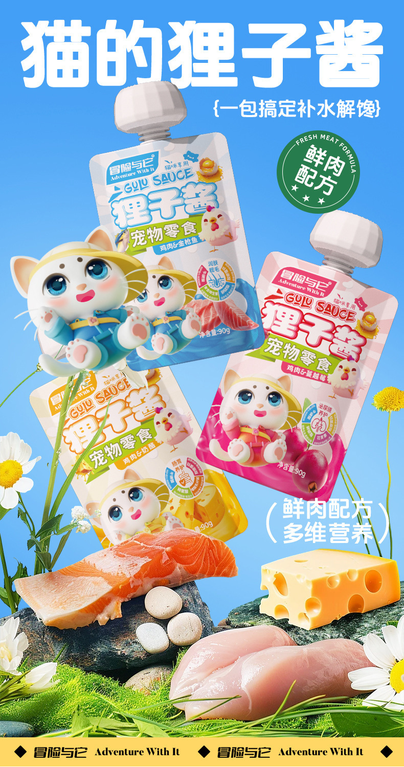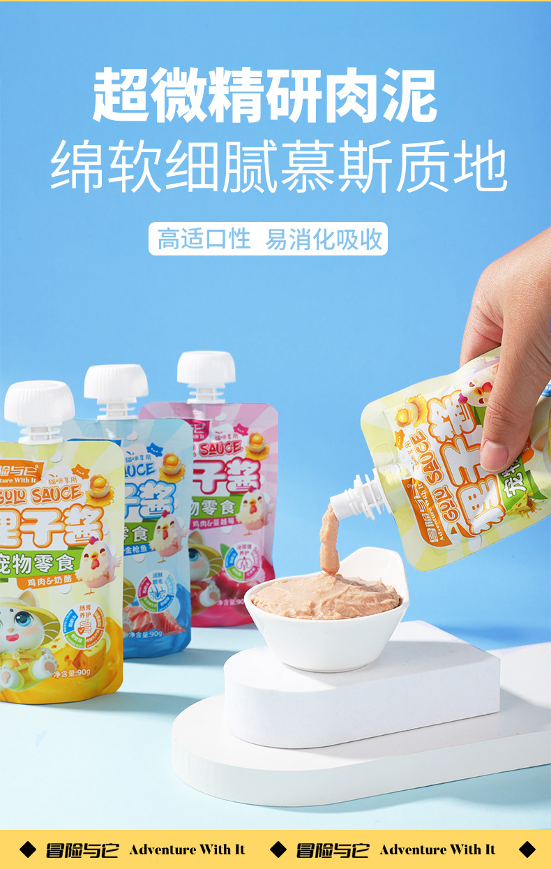 Приключение с этим бобровым соусом 90 г собачьих кошек закуски замечательные свежие соусы куриный тунец собачьи закуски кошки мокрый корм