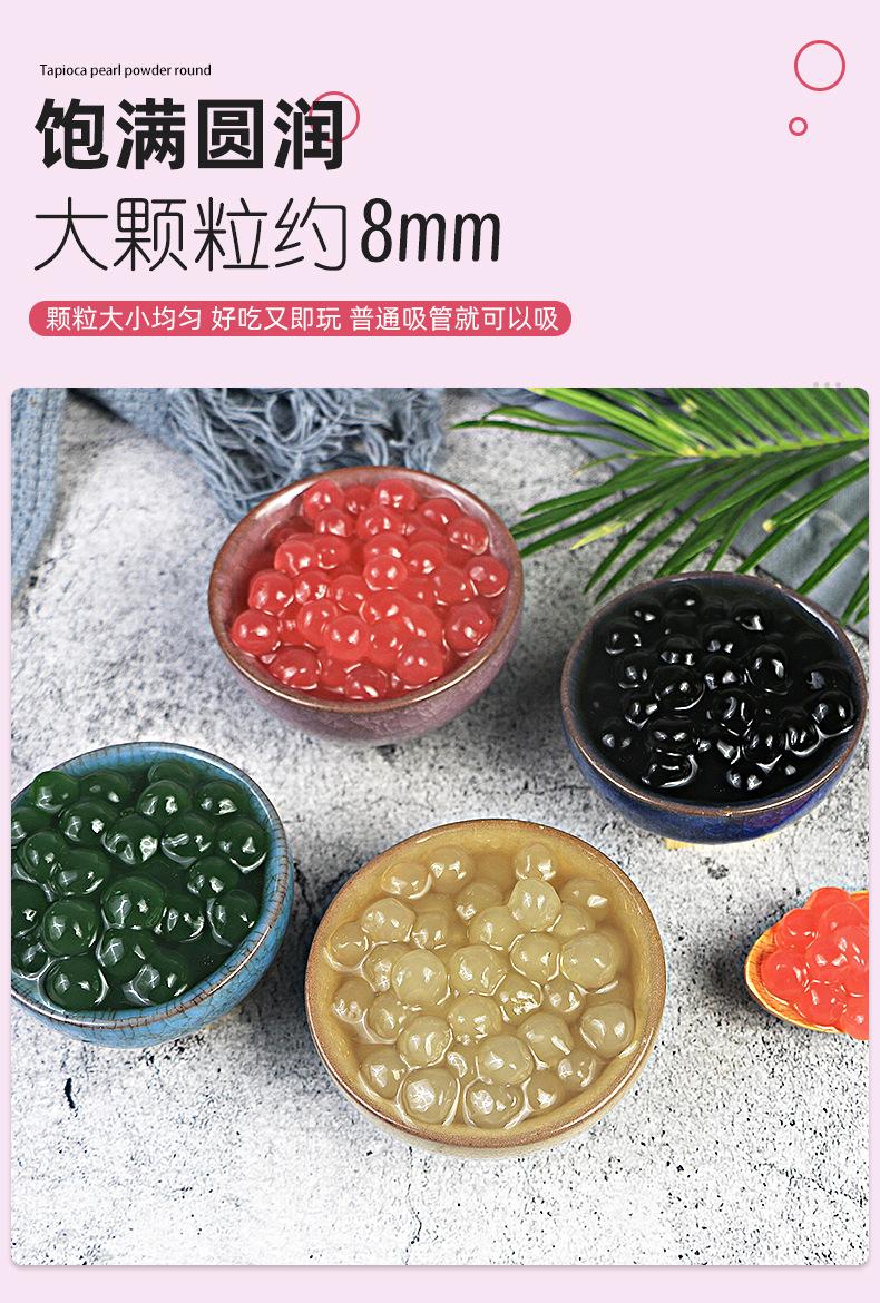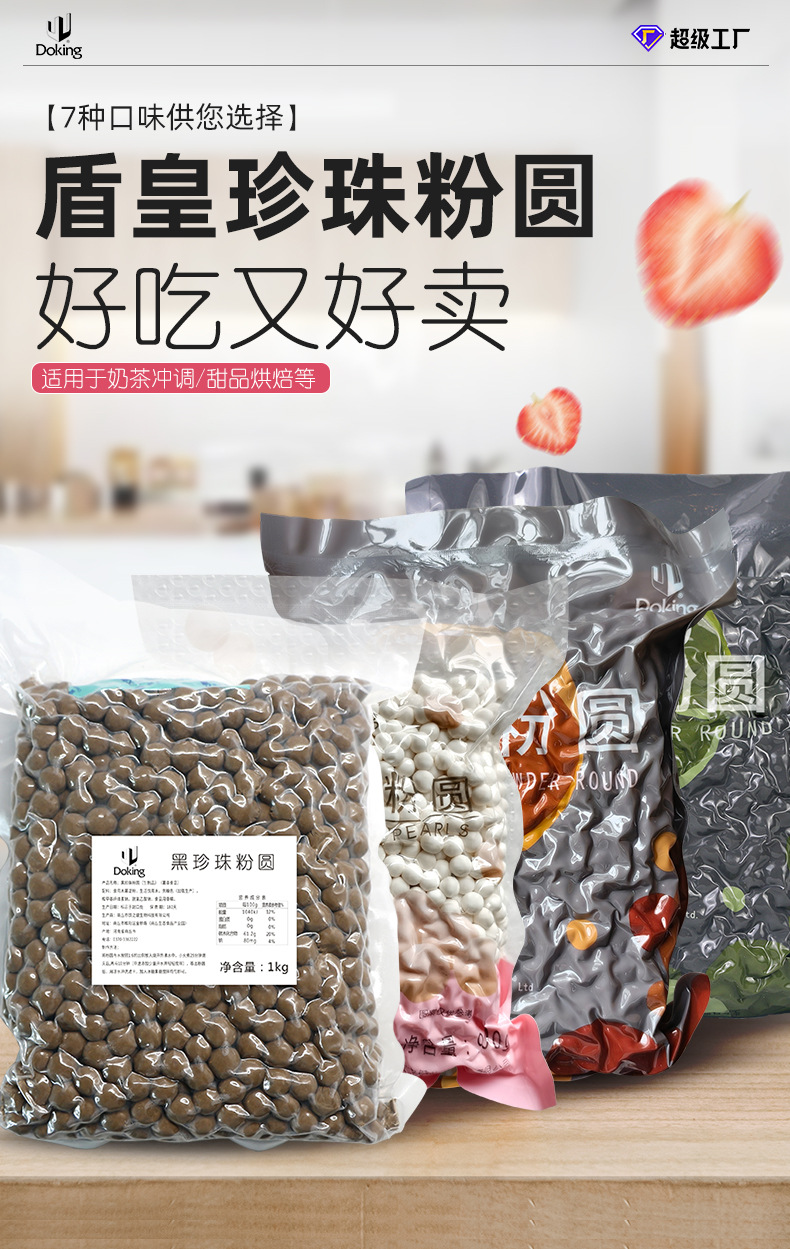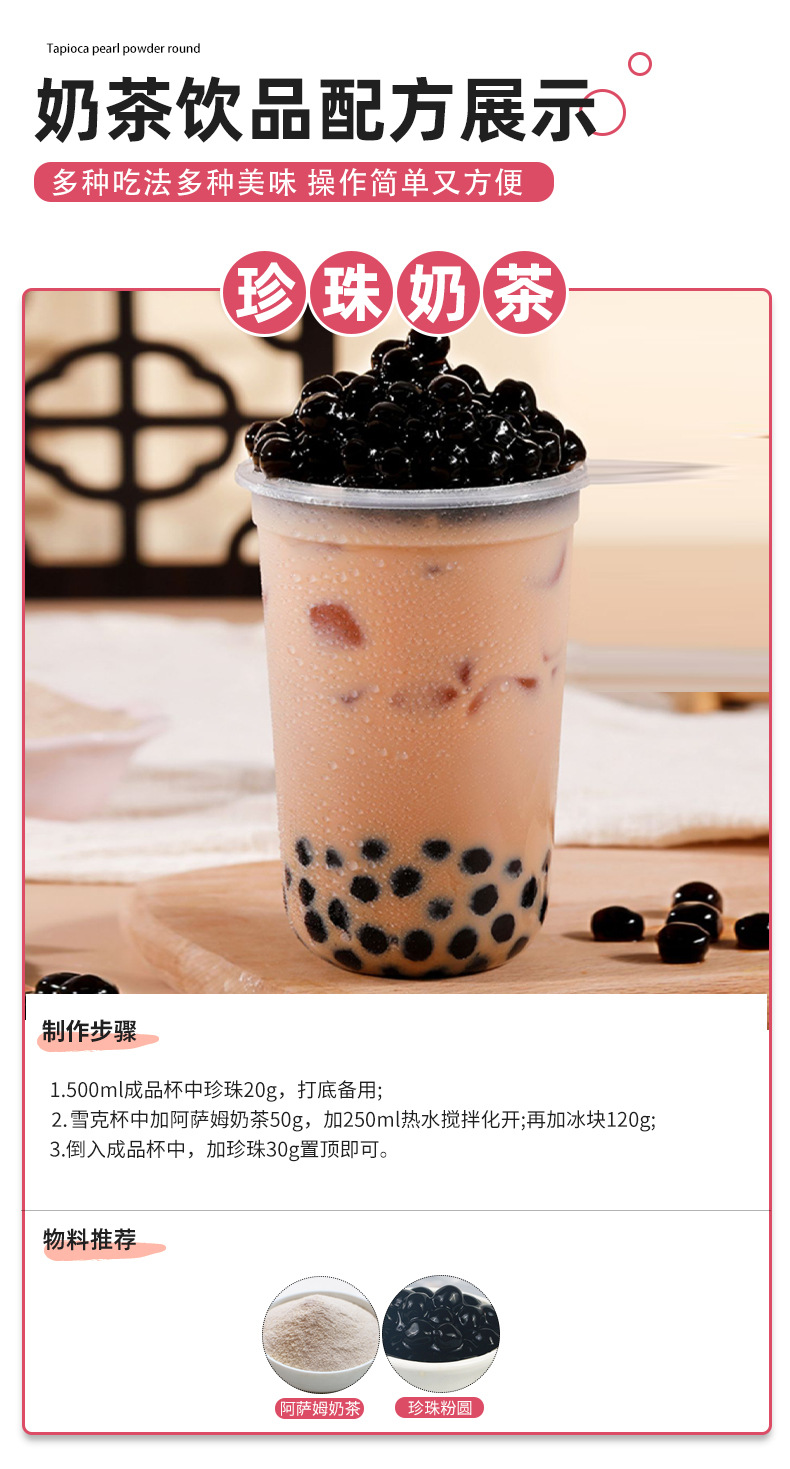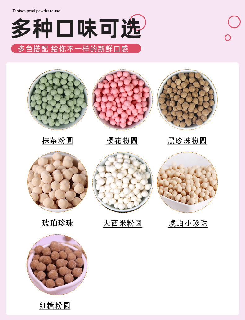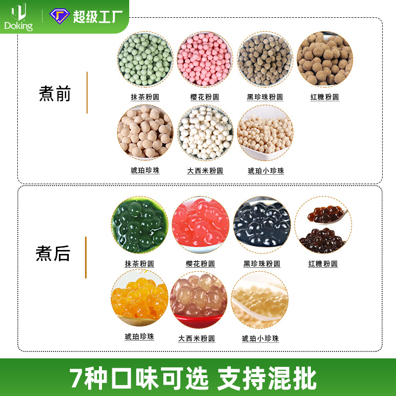 Мягкие рисовые шарики с черным жемчугом 1 кг (варить 25 минут и тушить 15 минут); Медленно приготовленные шарики из коричневого сахара 900г; Специальный крупный жемчужный порошок круглый 900г; Шарики из черной жемчужной пудры с быстроразрушающимся покрытием, 1 кг; 500 г шариков таро комнатной температуры.