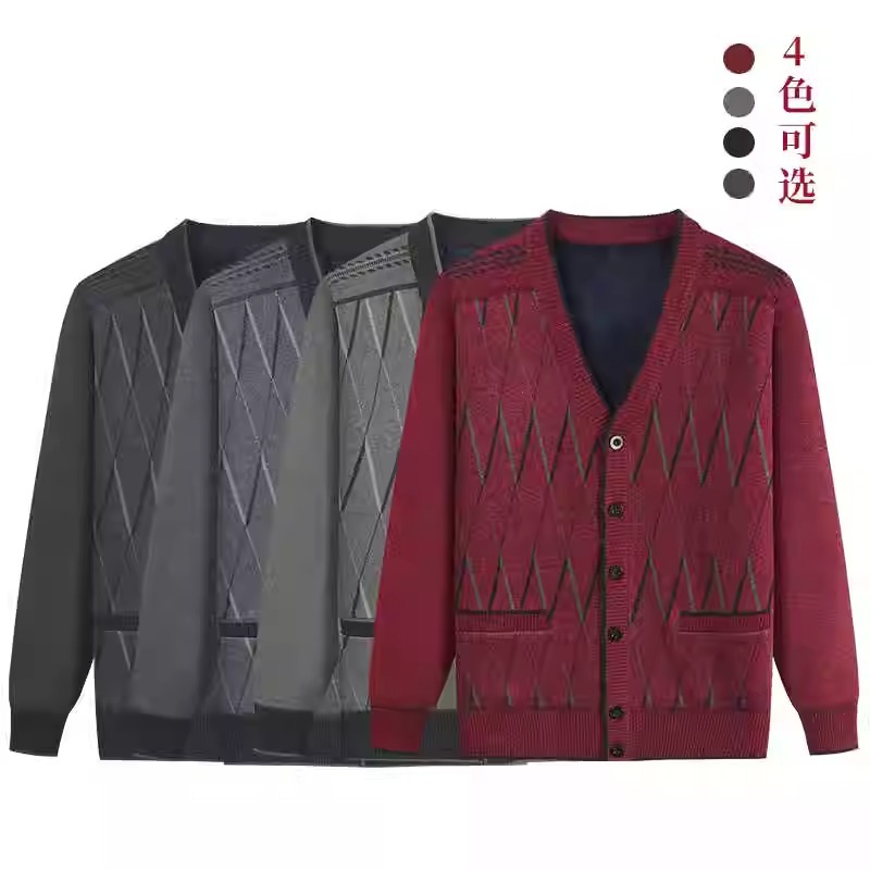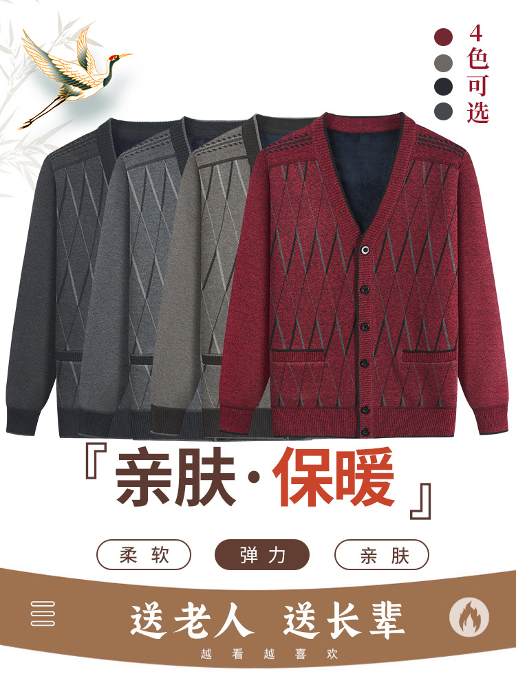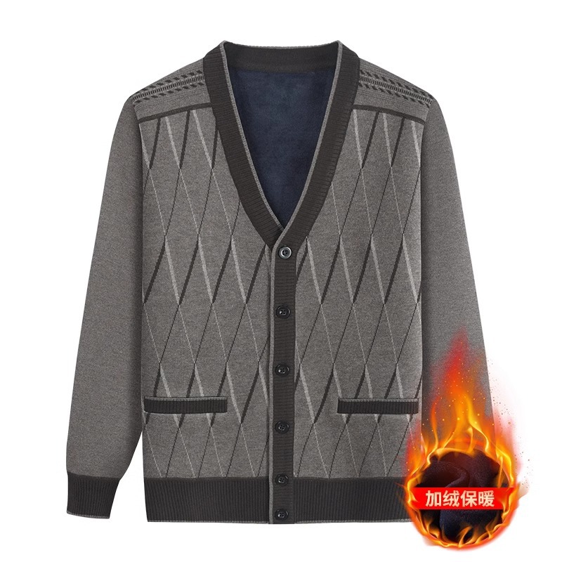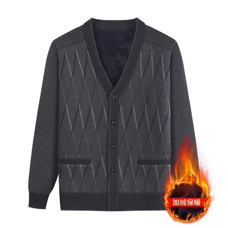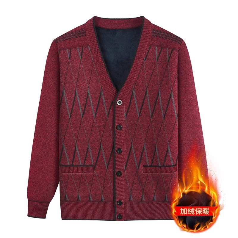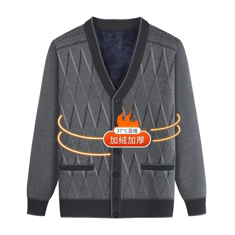 Кардиган с флисовой подкладкой от Source Factory, вязаный жакет для папы и дедушки, вязаная одежда для мужчин среднего и пожилого возраста, верхняя одежда.