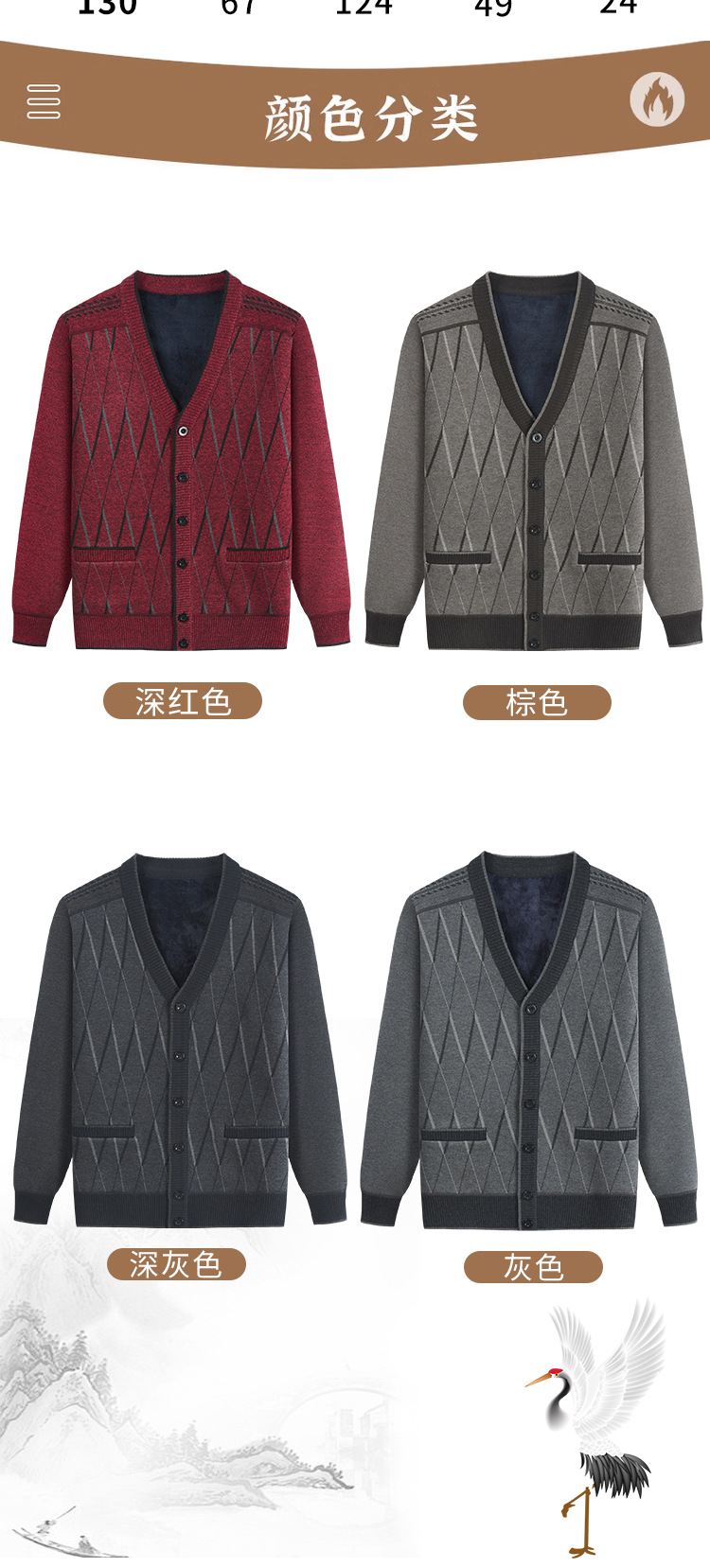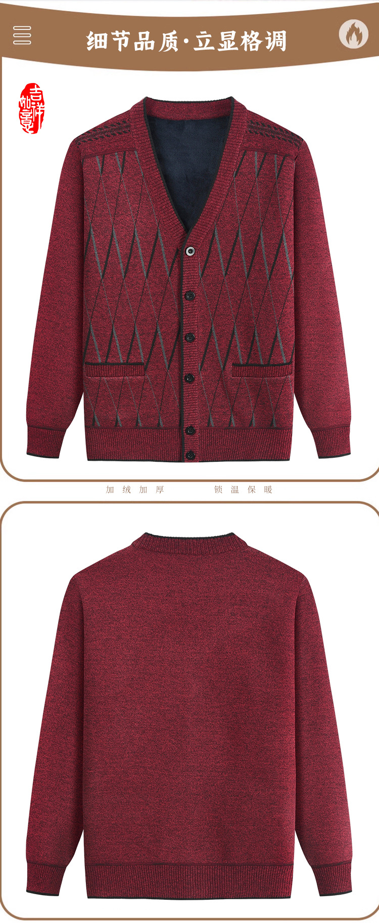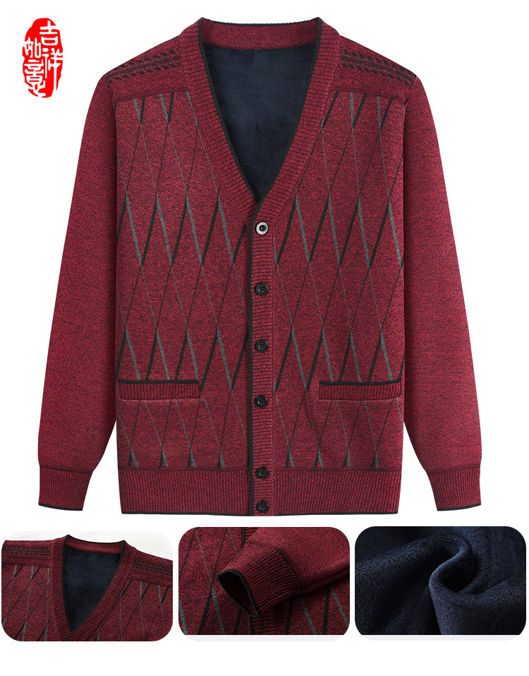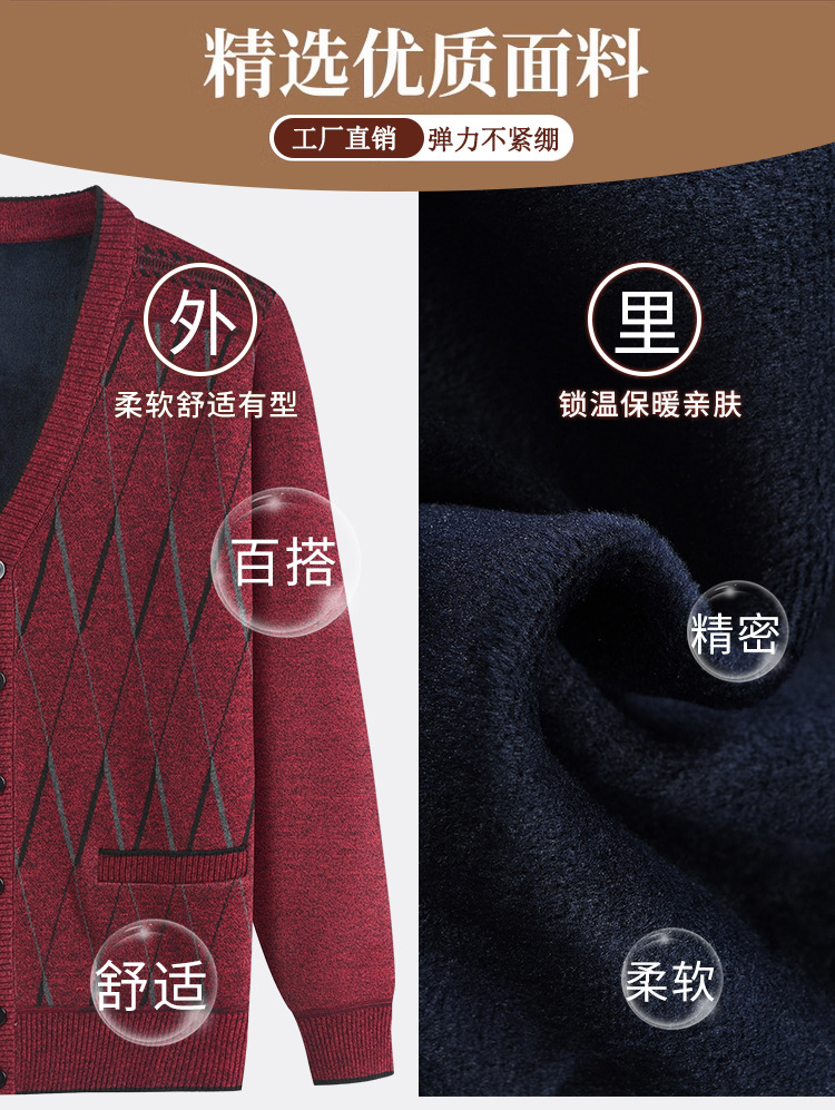 Кардиган с флисовой подкладкой от Source Factory, вязаный жакет для папы и дедушки, вязаная одежда для мужчин среднего и пожилого возраста, верхняя одежда.