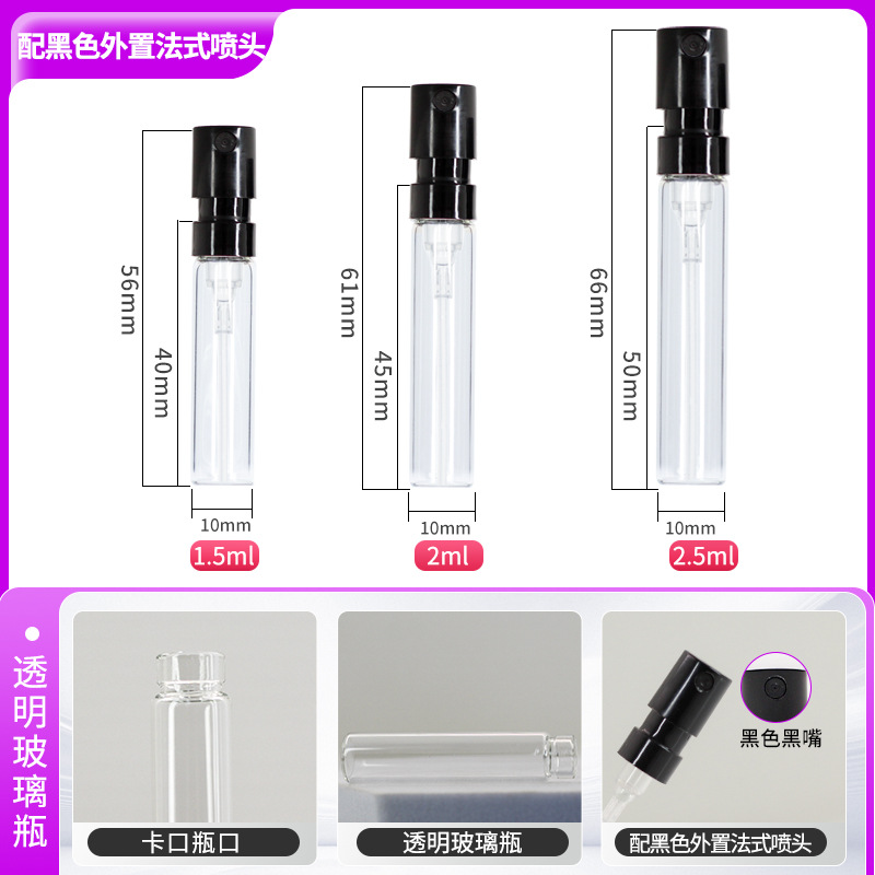 1 мл флакон для заправки духов, стеклянный портативный мини-бутылка, прозрачный флакон с французским распылителем, 2 мл флакон для заправки духов
