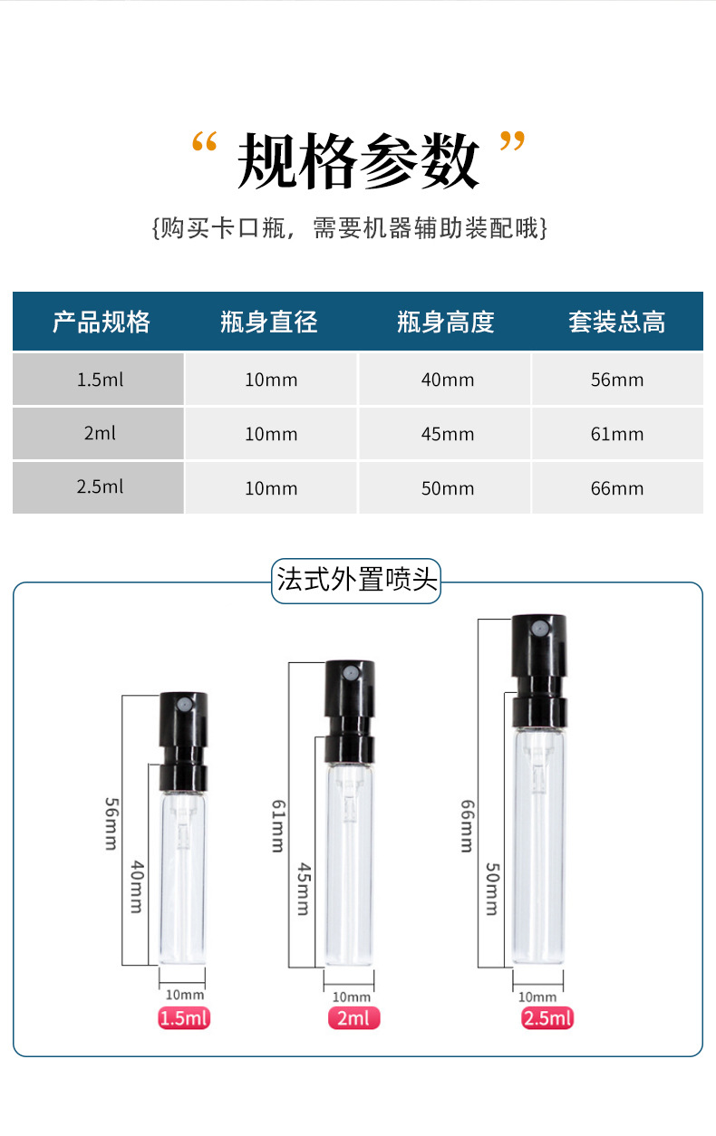2ml; 2.5ml; 1.5ml; Прозрачная бутылка + черная насадка.