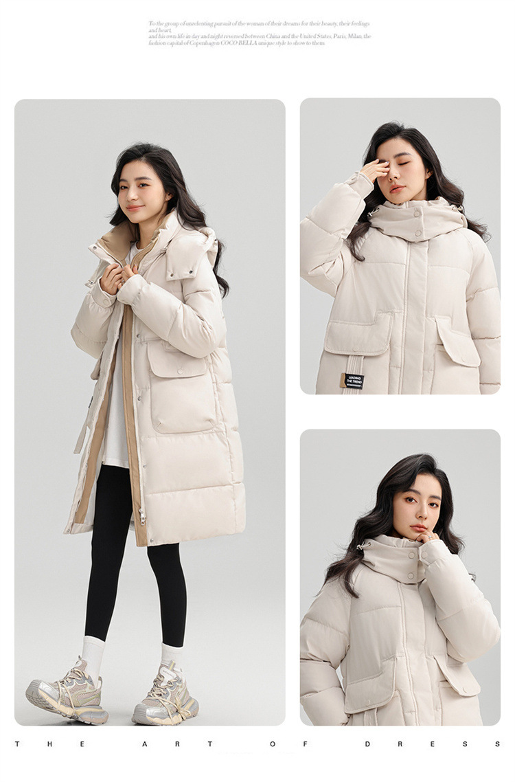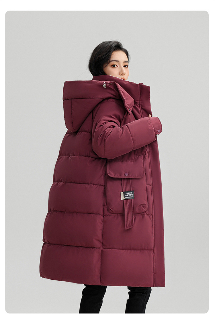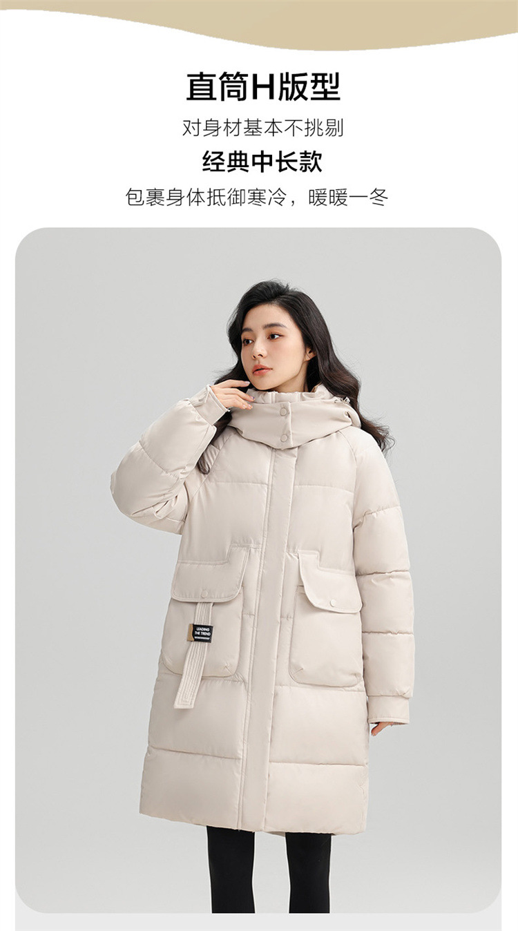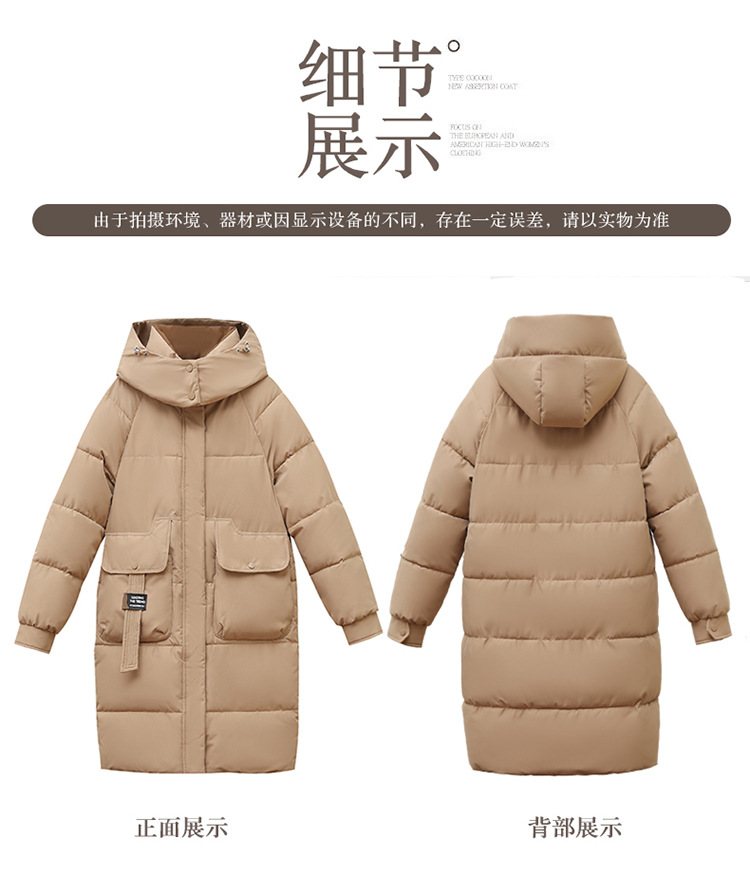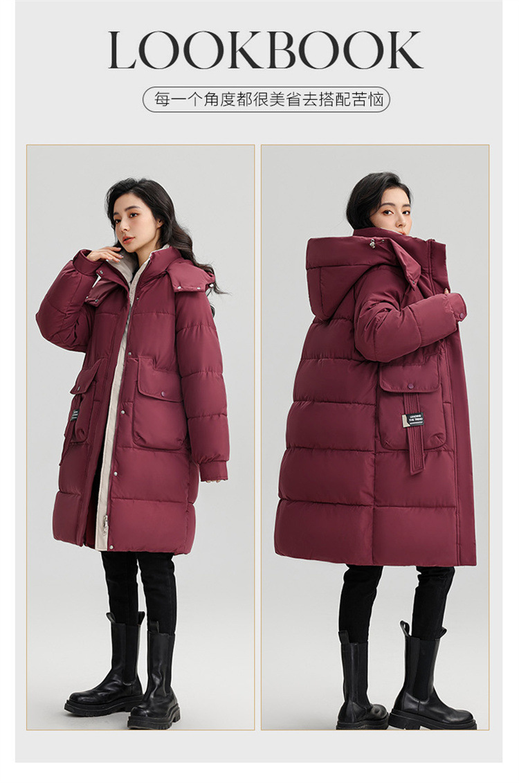 Большой карман средняя длинная хлопчатобумажная одежда женщина 2024 зима новая корейская версия с капюшоном утолщенная и теплая студенческая ебная одежда