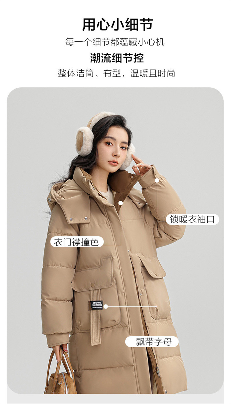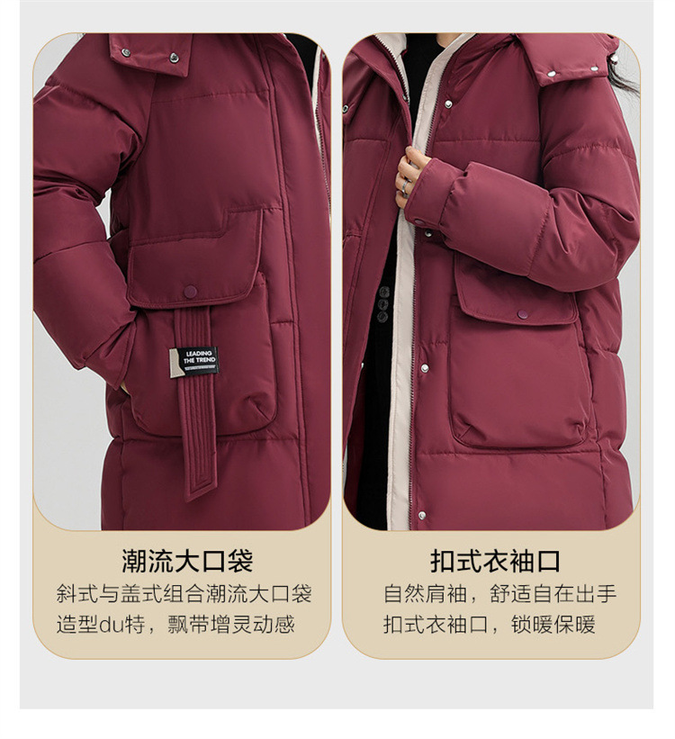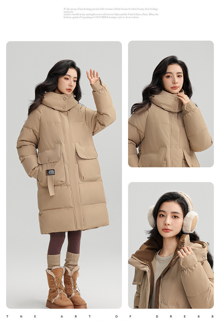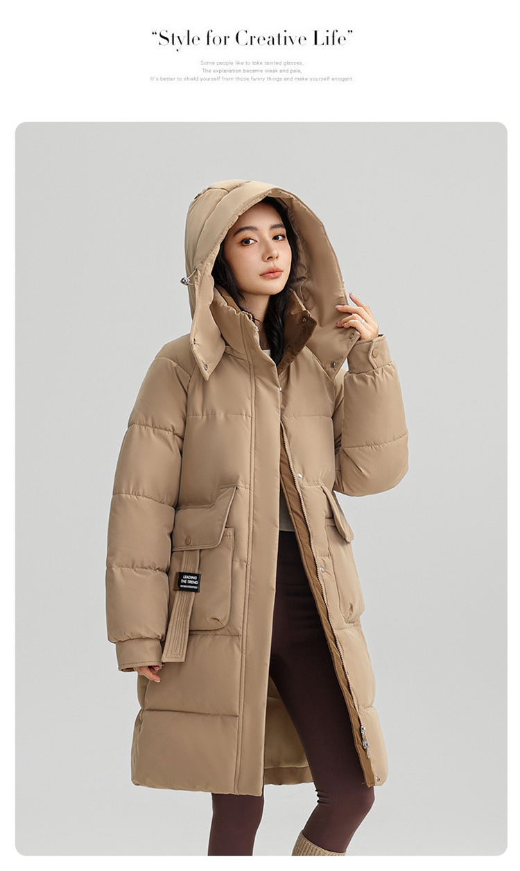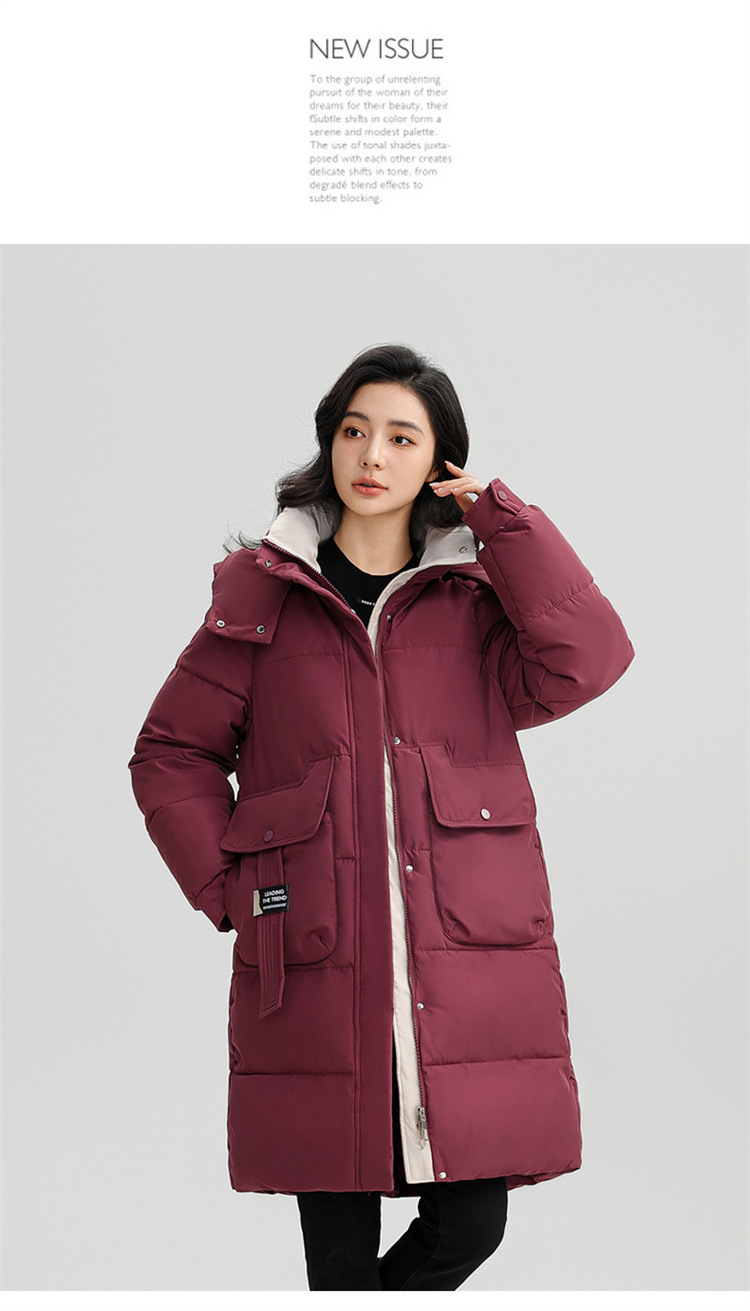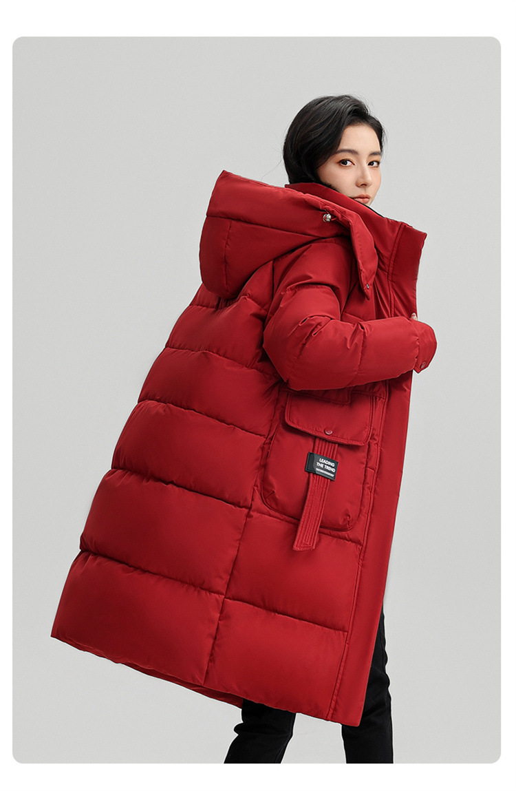 Большой карман средняя длинная хлопчатобумажная одежда женщина 2024 зима новая корейская версия с капюшоном утолщенная и теплая студенческая ебная одежда