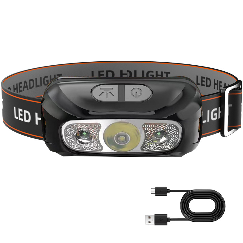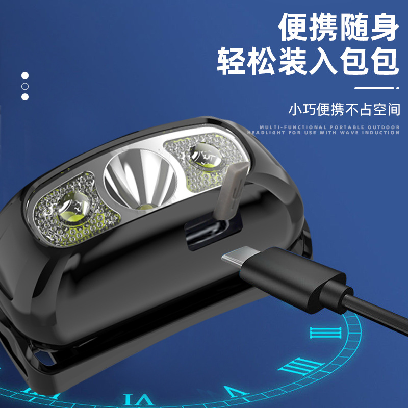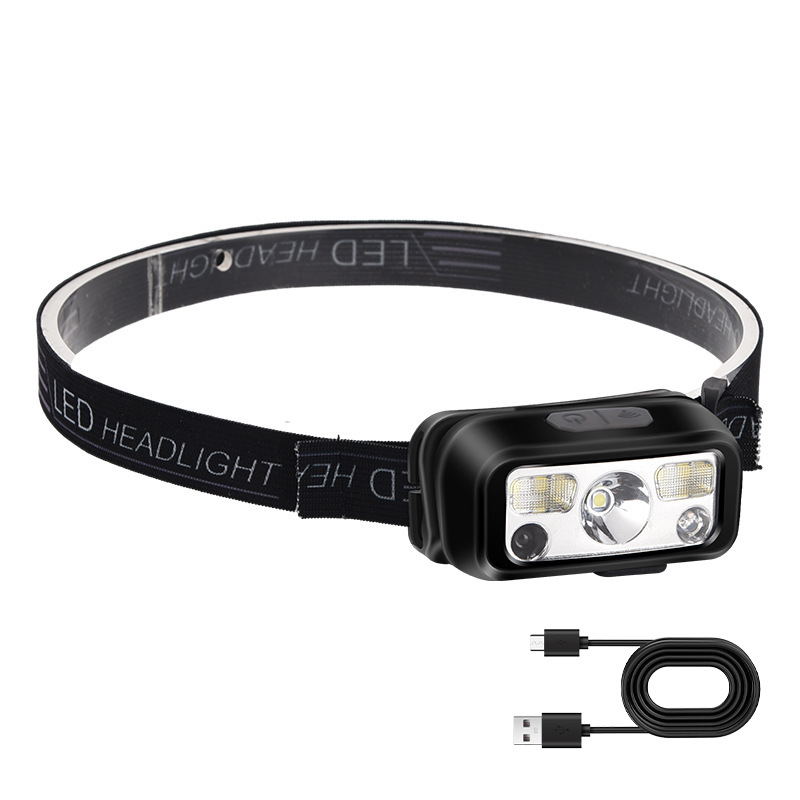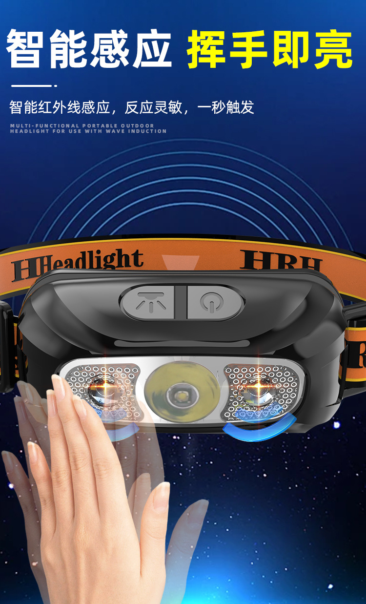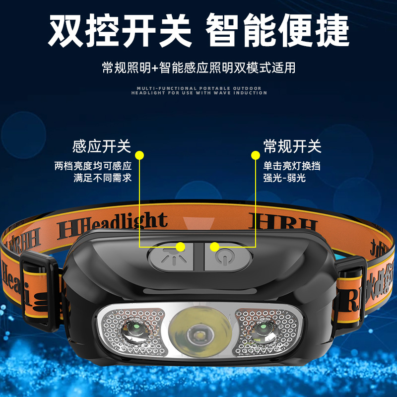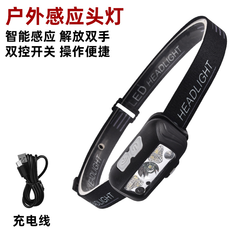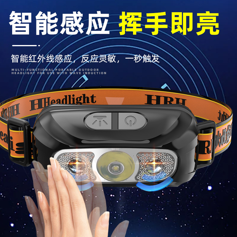 Новая трансграничная модель с предупреждающим красным светом, USB перезаряжаемая фара, уличная водонепроницаемая светодиодная фара для езды на велосипеде, бега, ночной рыбалки, сенсорная фара