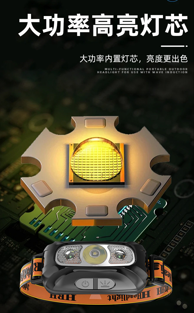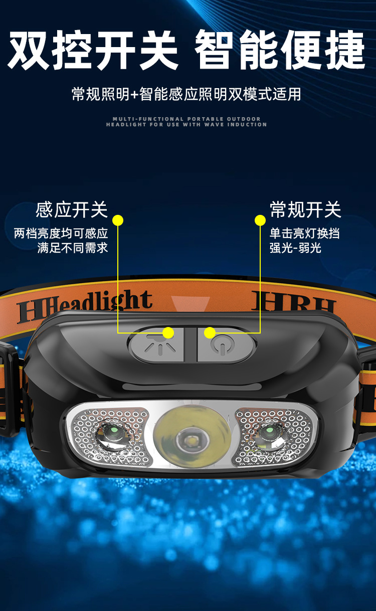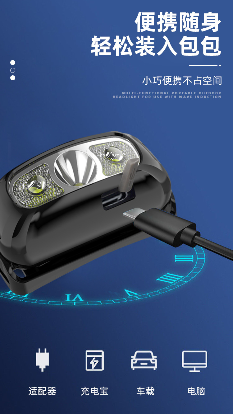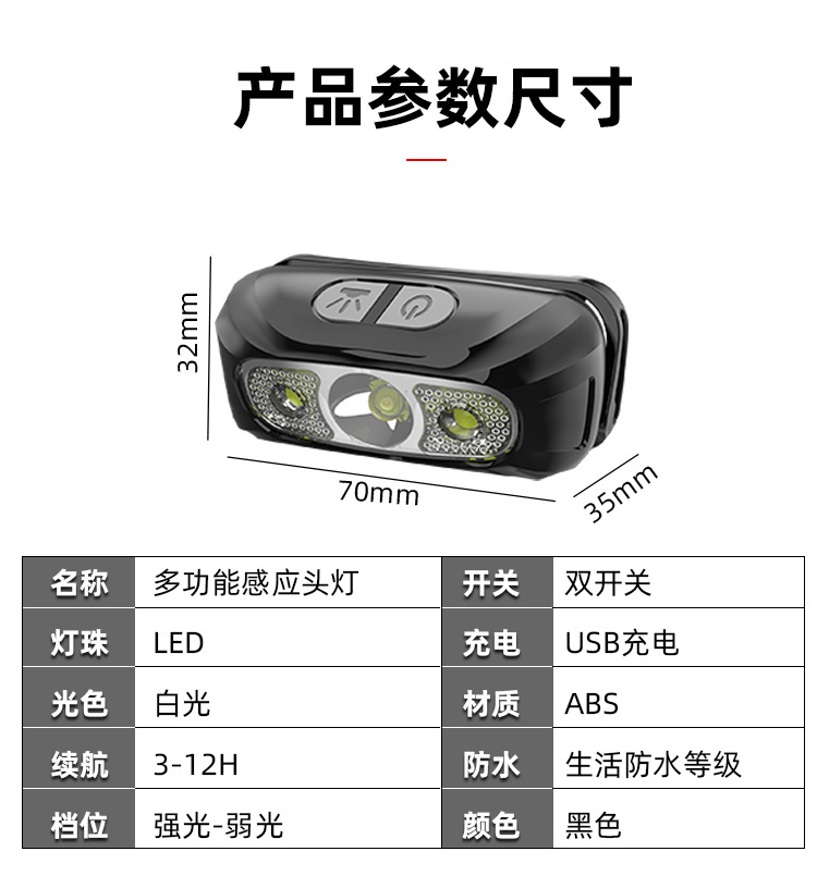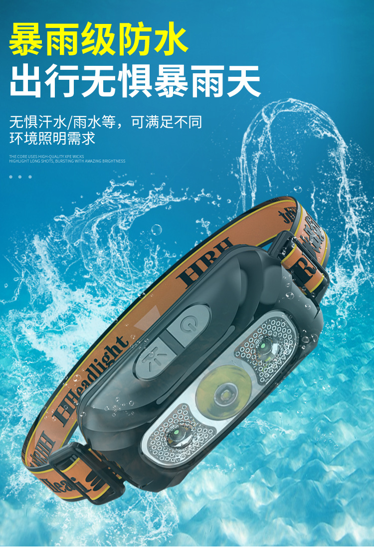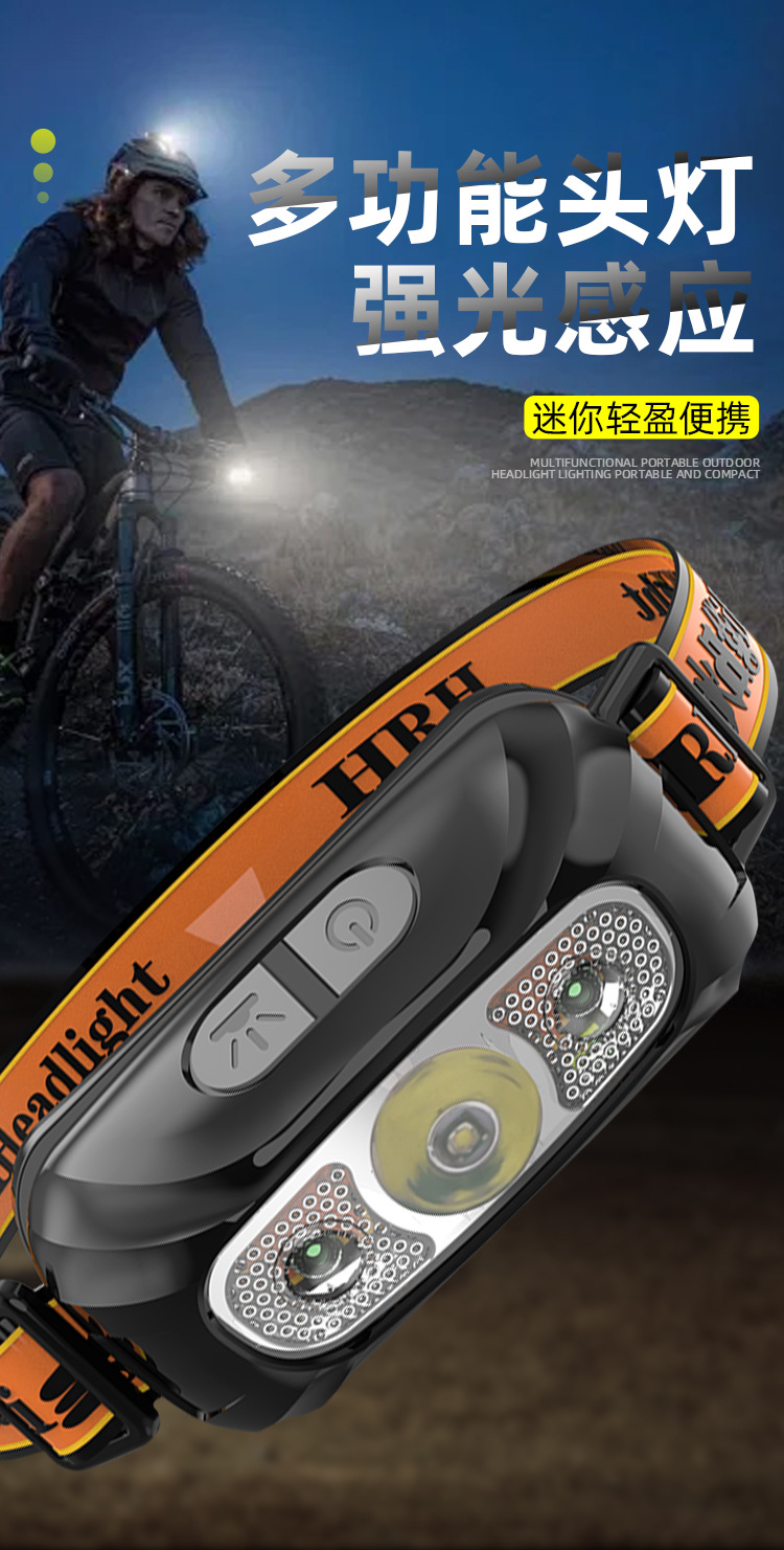Новая трансграничная модель с предупреждающим красным светом, USB перезаряжаемая фара, уличная водонепроницаемая светодиодная фара для езды на велосипеде, бега, ночной рыбалки, сенсорная фара