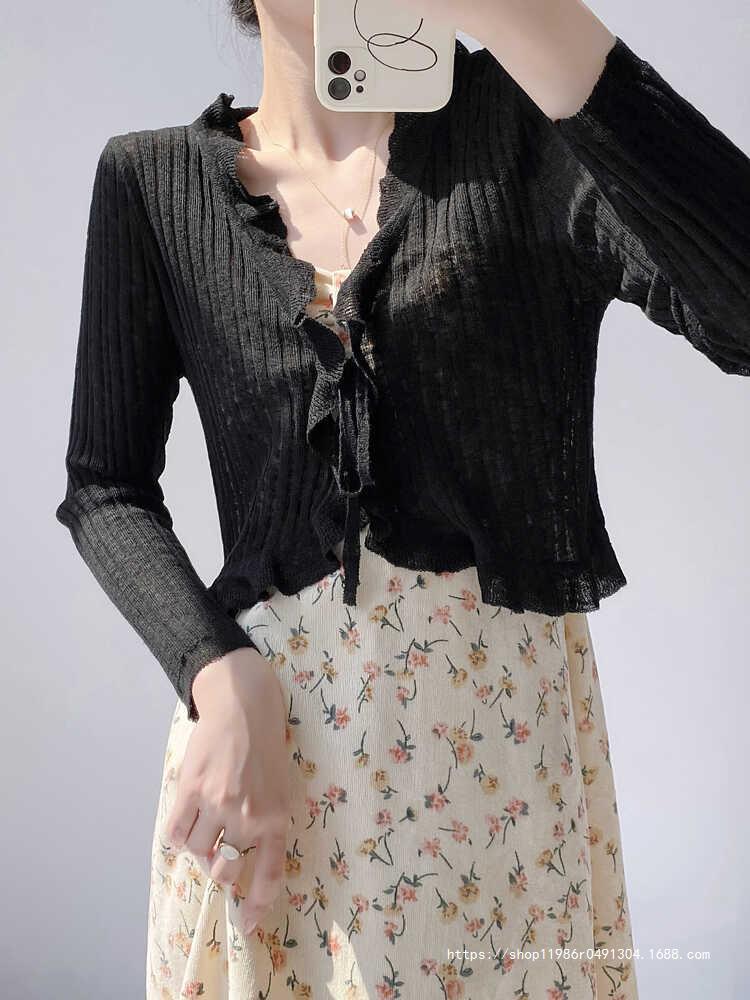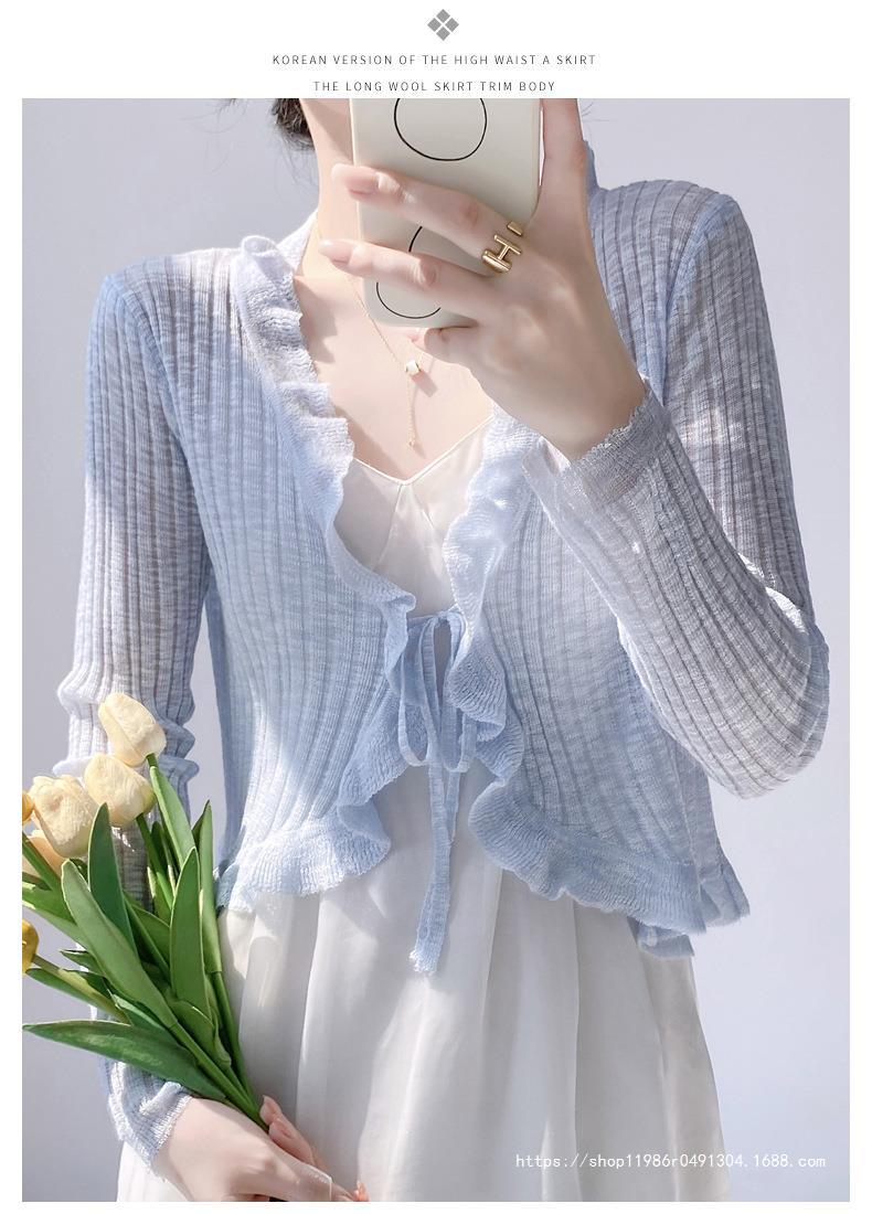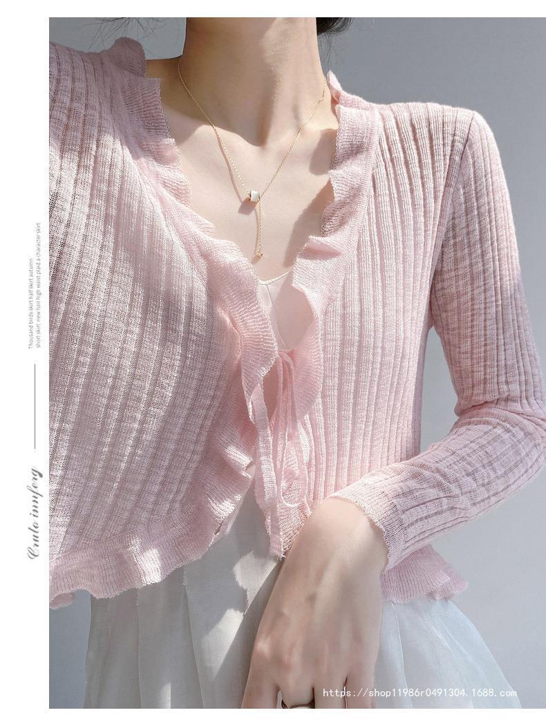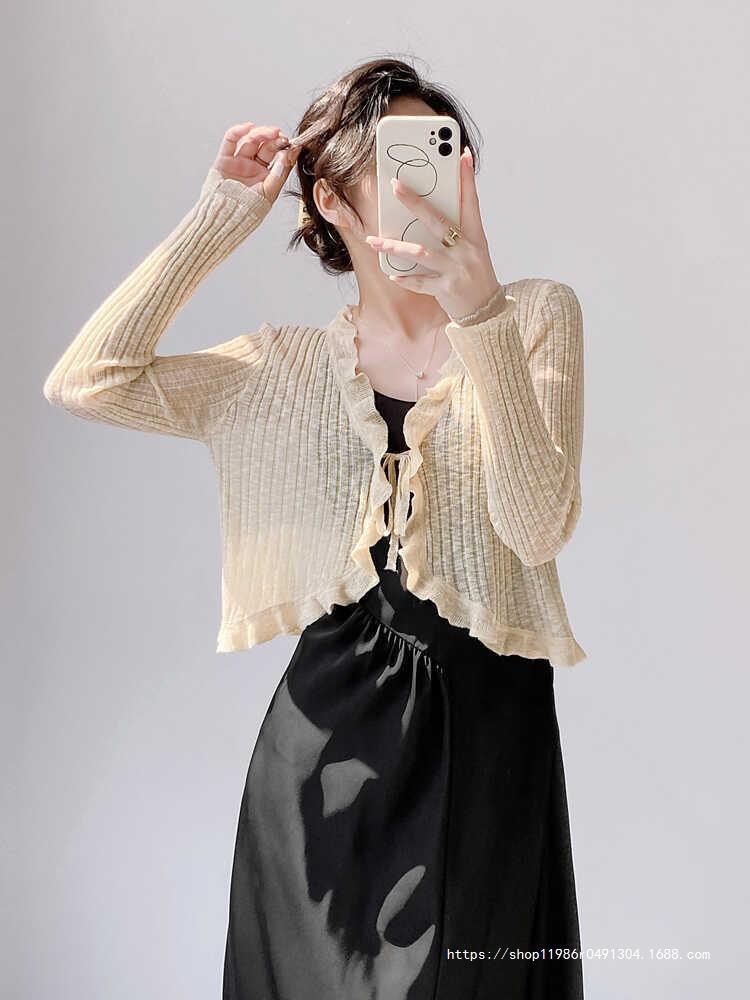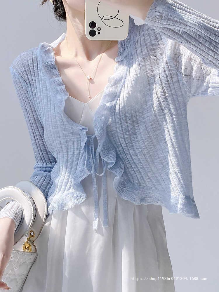 Женская тонкая подтяжка кондиционер блузка шаль плечо фея шнуровка шнуровка шнуровка темперамент солнцезащитный крем вязаный кардиган