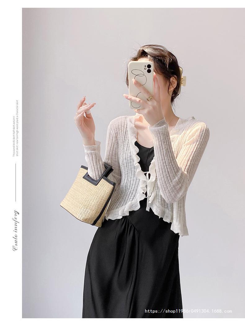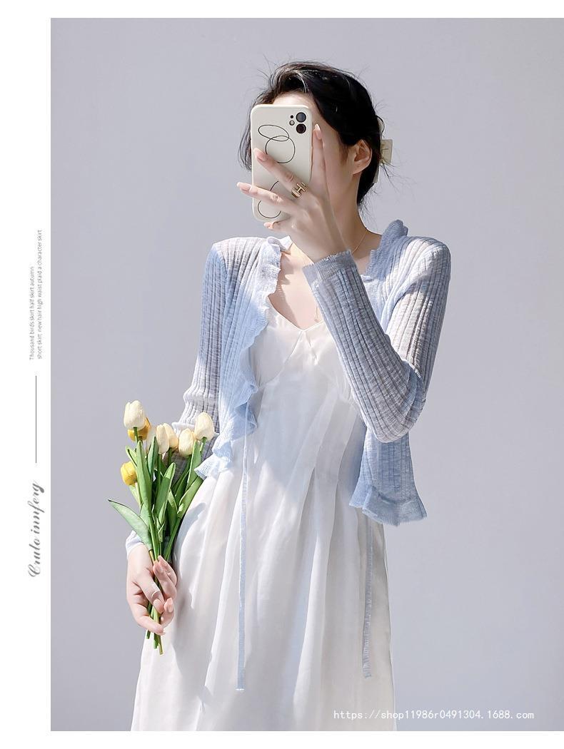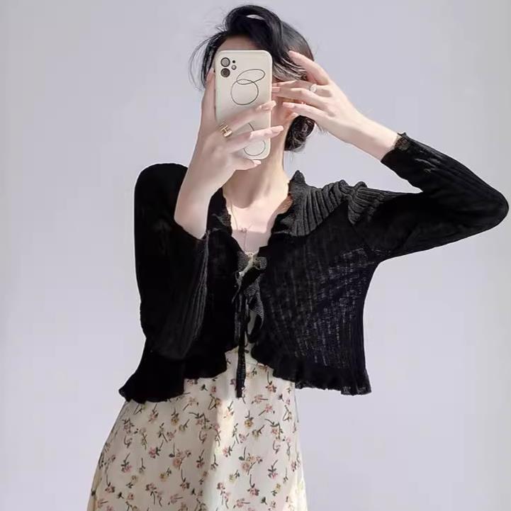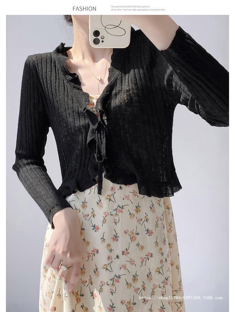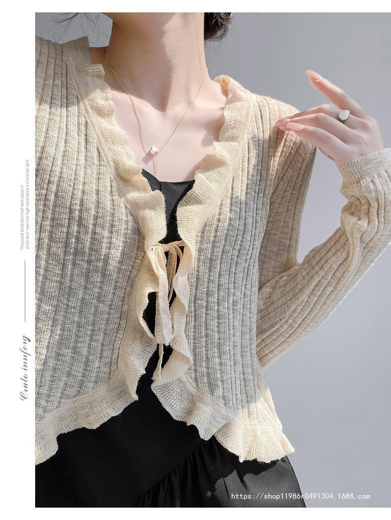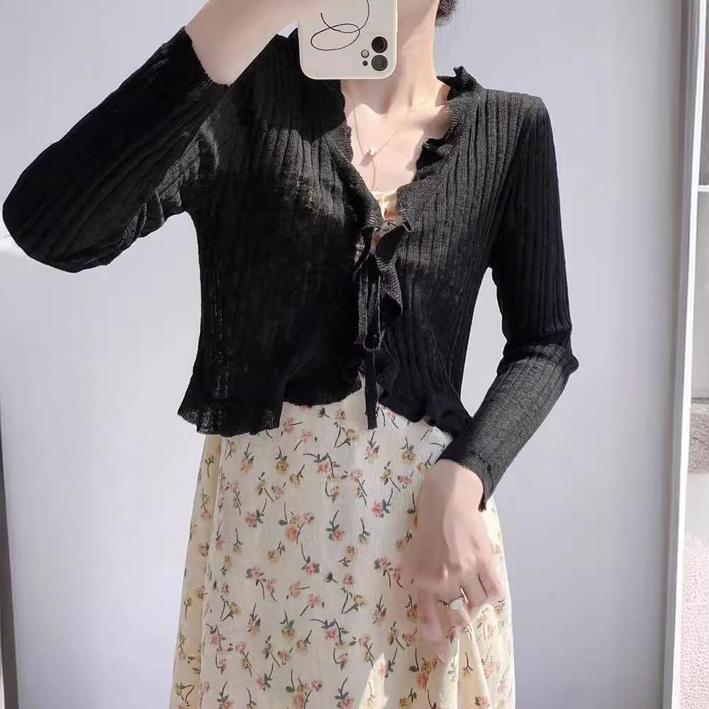 Женская тонкая подтяжка кондиционер блузка шаль плечо фея шнуровка шнуровка шнуровка темперамент солнцезащитный крем вязаный кардиган