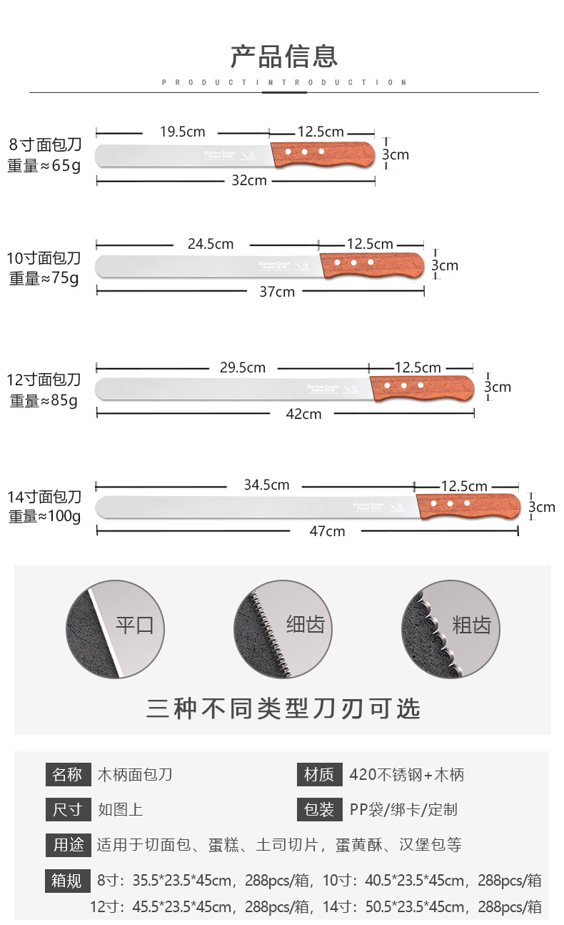 不锈钢烘焙工具切面包专用刀锯齿刀 蛋糕土司切片刀三明治面包刀