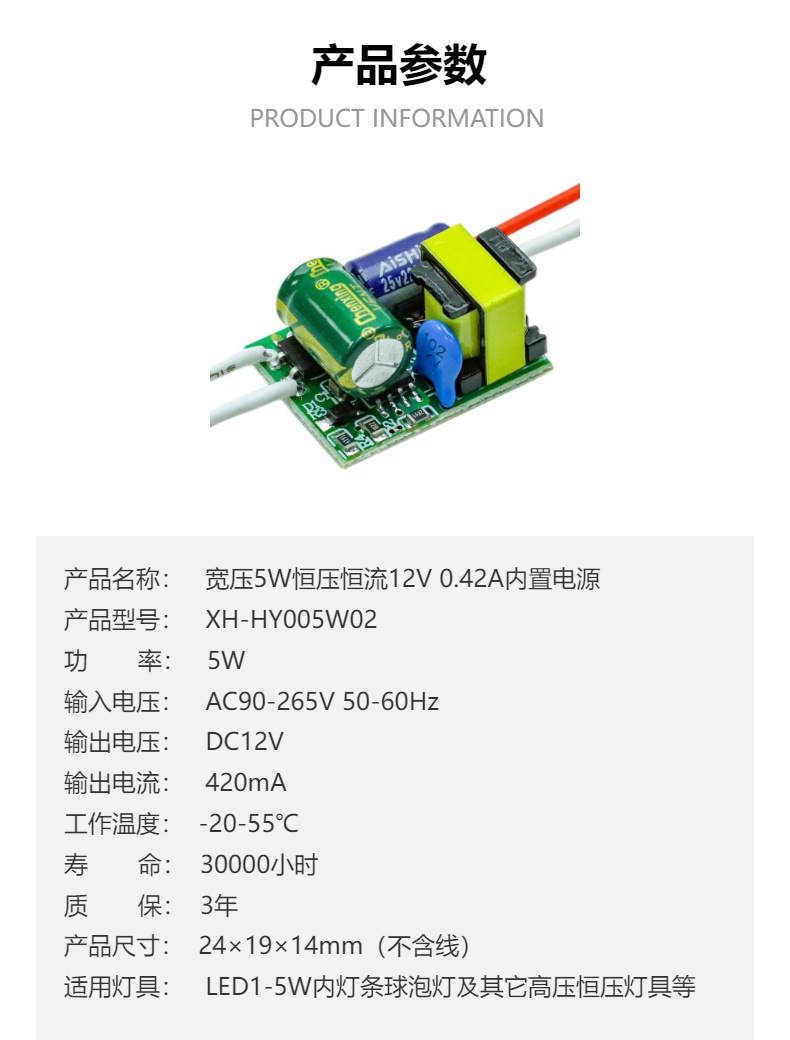 Драйвер светодиодов, источник питания с широким диапазоном напряжения, 5 Вт, постоянное напряжение, постоянный ток, 12В 0.42А, встроенный блок питания, трансформатор для светодиодных лент, полная мощность