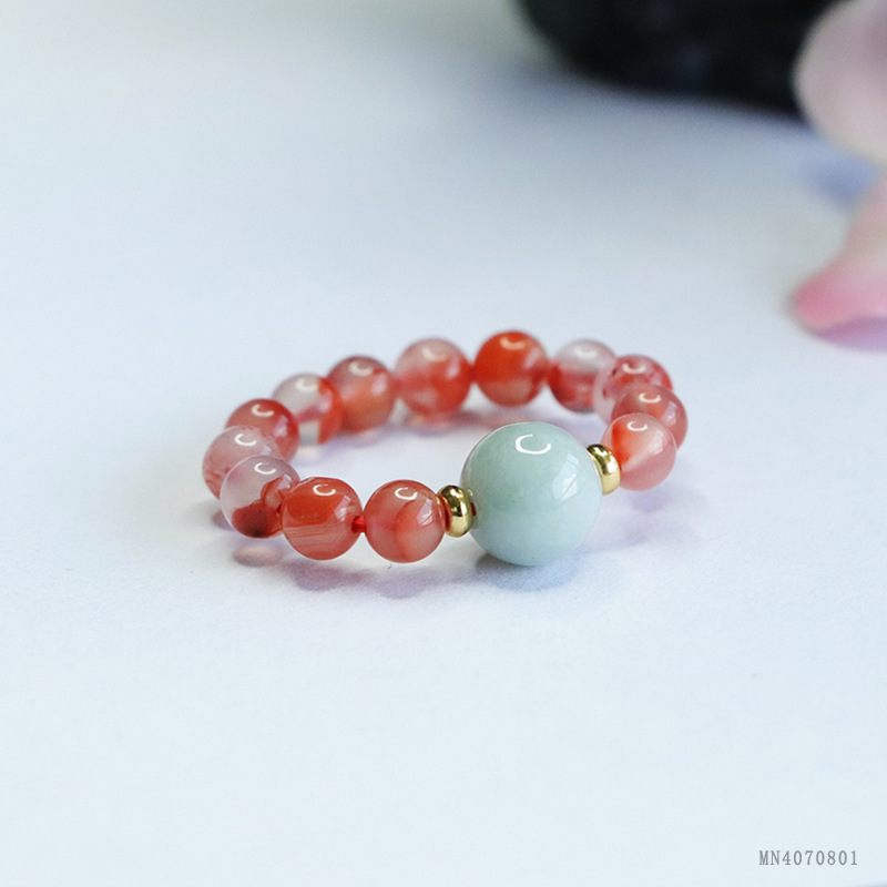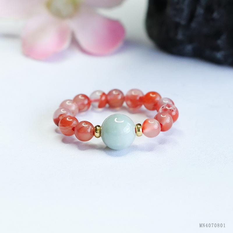Плетеное кольцо из изумрудных бусин Bingpiaonan из красного агата (MN 4070801 )