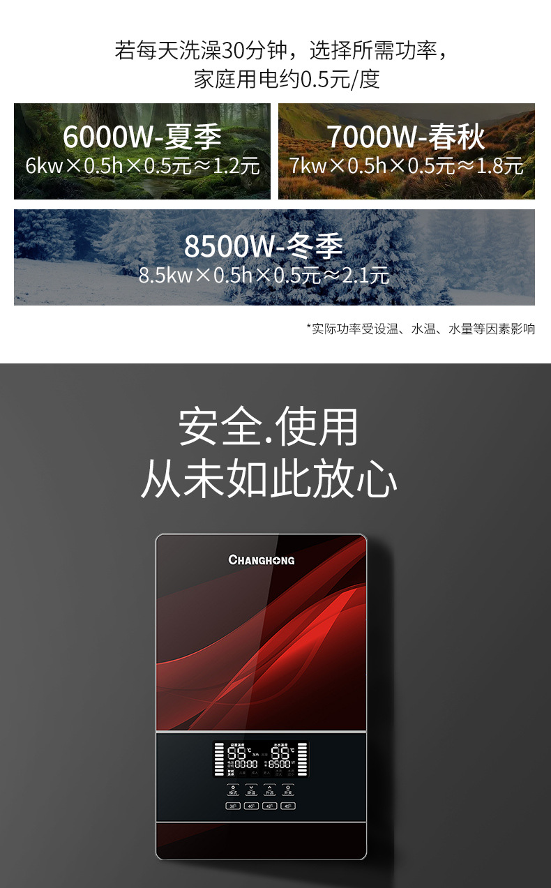 Changhong 8500W мгновенный электрический водонагреватель для купания, душ для купания, нагреватель с быстрой температурой инвертора и экономия энергии