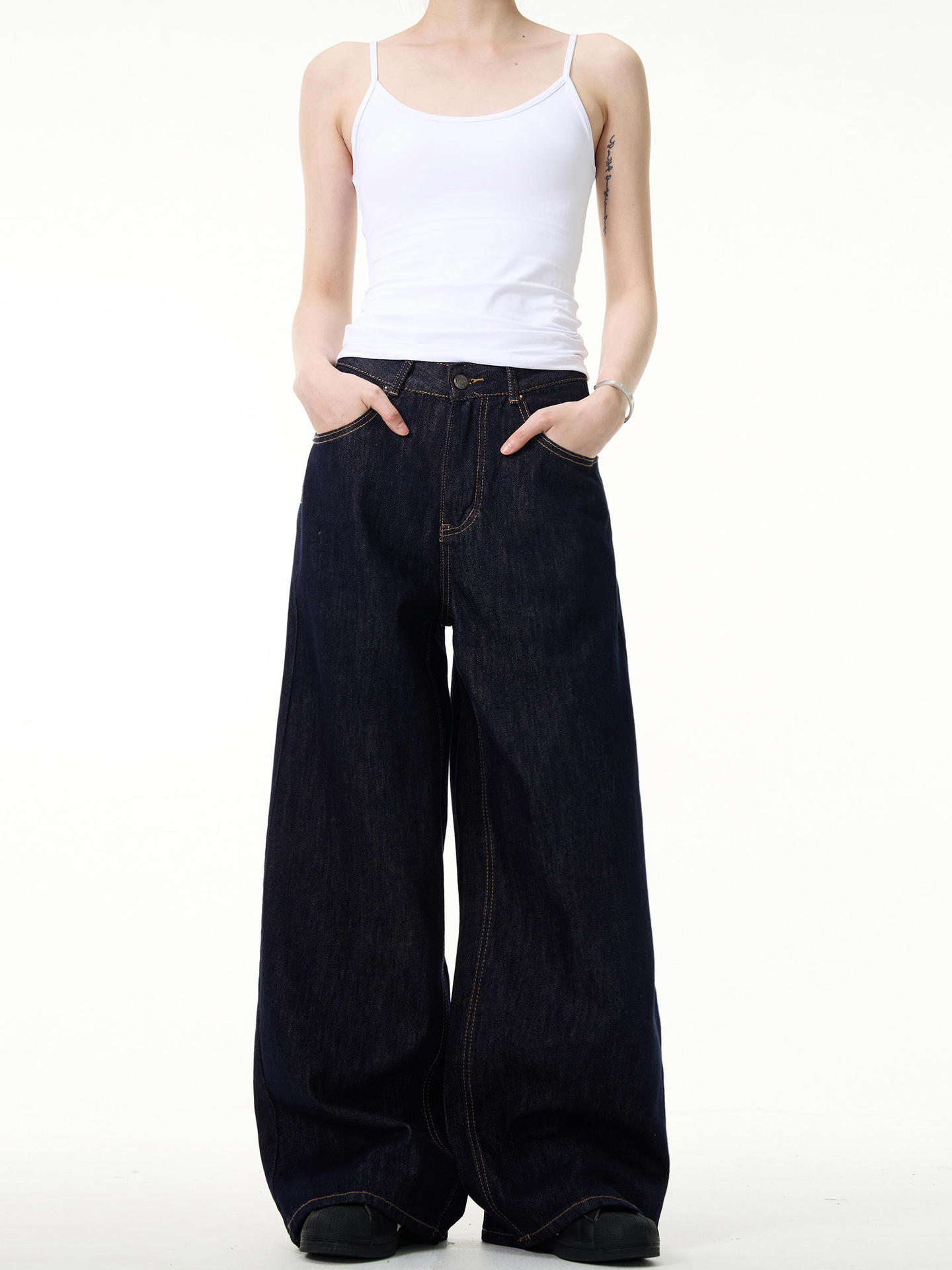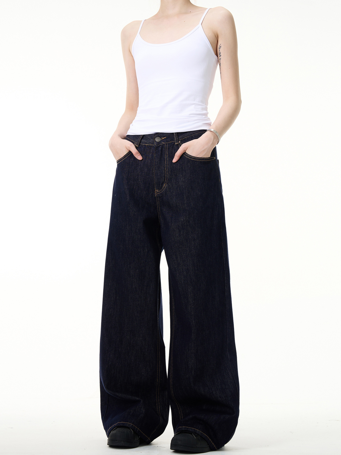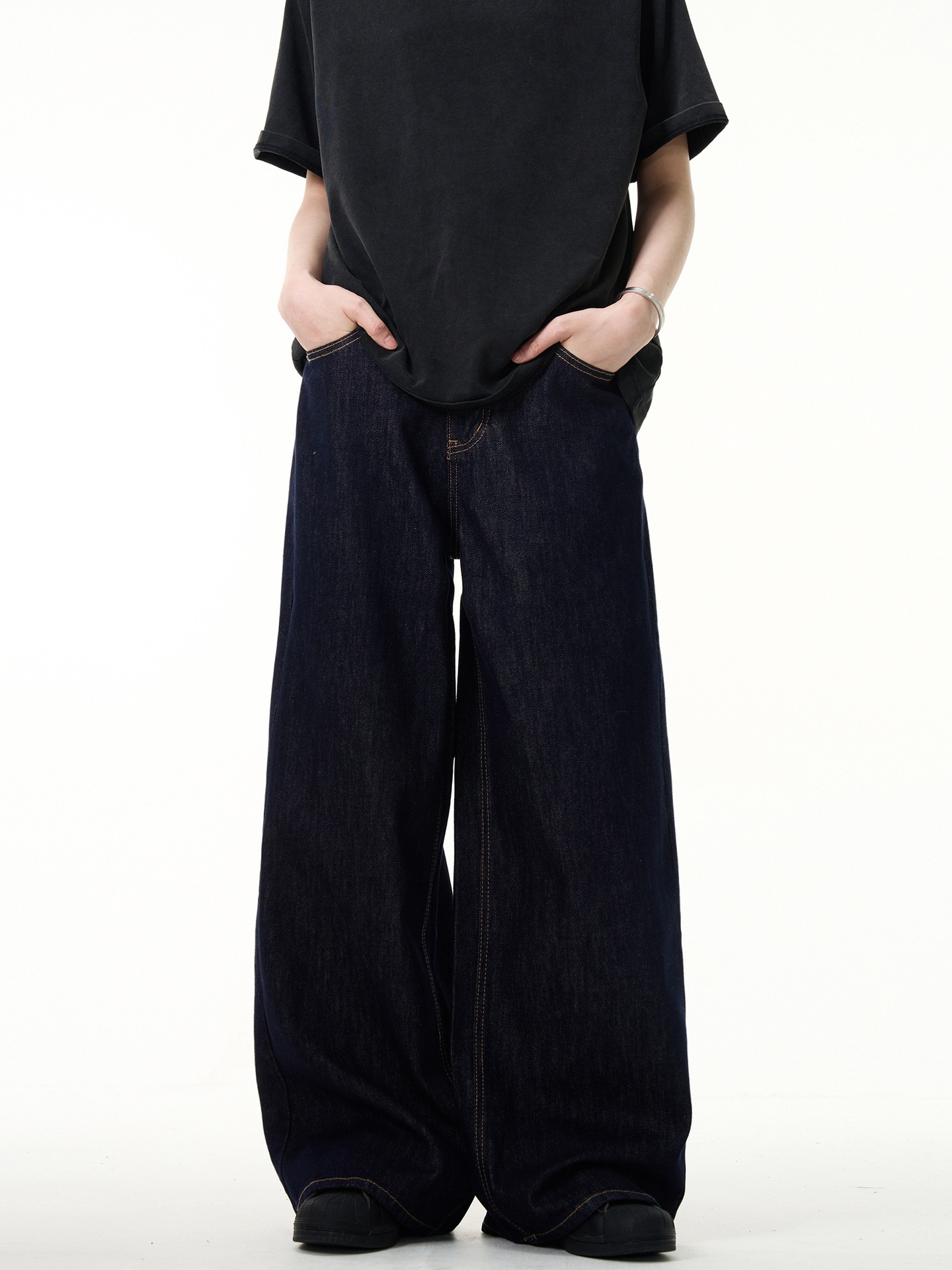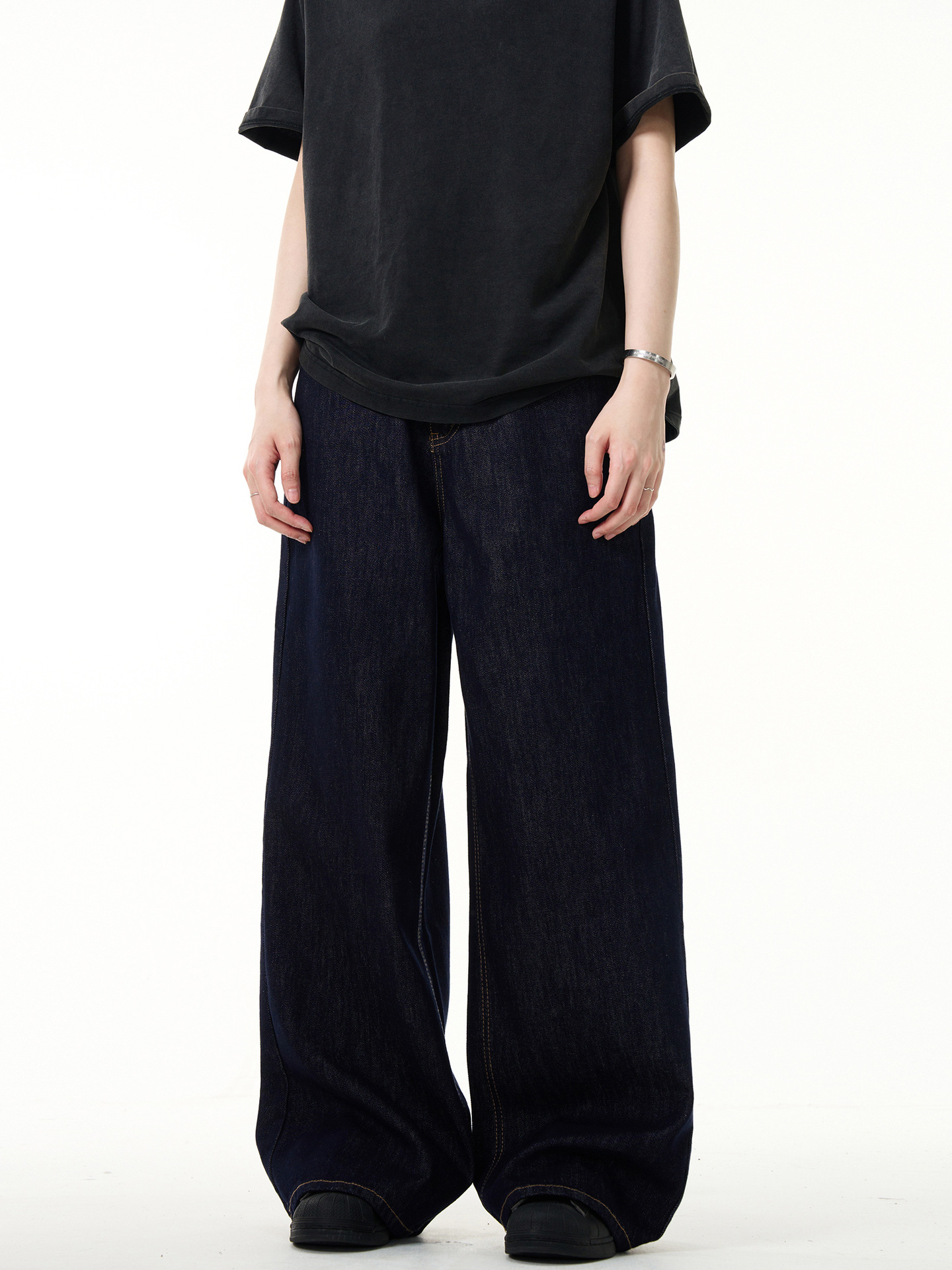 Американский минималистский ретро синие прямые джинсы для мужчин и женщин основы свободные широкие ножки cleanfit брюки прилив