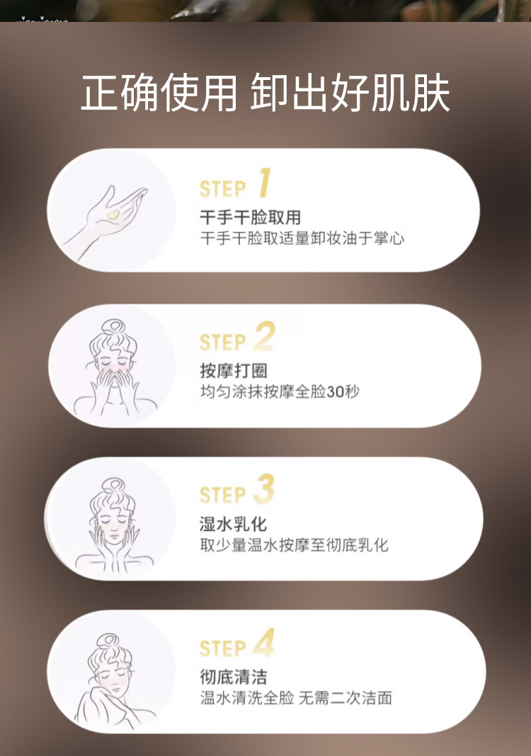 Как использовать: высушите лицо руками, возьмите соответствующее количество этого продукта, аккуратно нанесите на лицо круговой массаж, чтобы растворить макияж, затем возьмите соответствующее количество воды и аккуратно помассируйте, промойте водой
