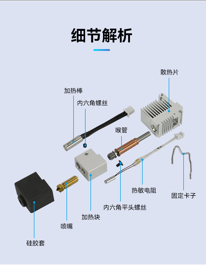 Латунная насадка 0,4; Защитная крышка теплового блока 1 шт.; Горловина из титанового сплава; Комплект горячего конца — латунная насадка 0,4 мм.; Комплект горячего конца --- сопло из твердой стали 0,4 мм; Насадка из твердой стали 0,4; Обновление горячего конца Kobra 3