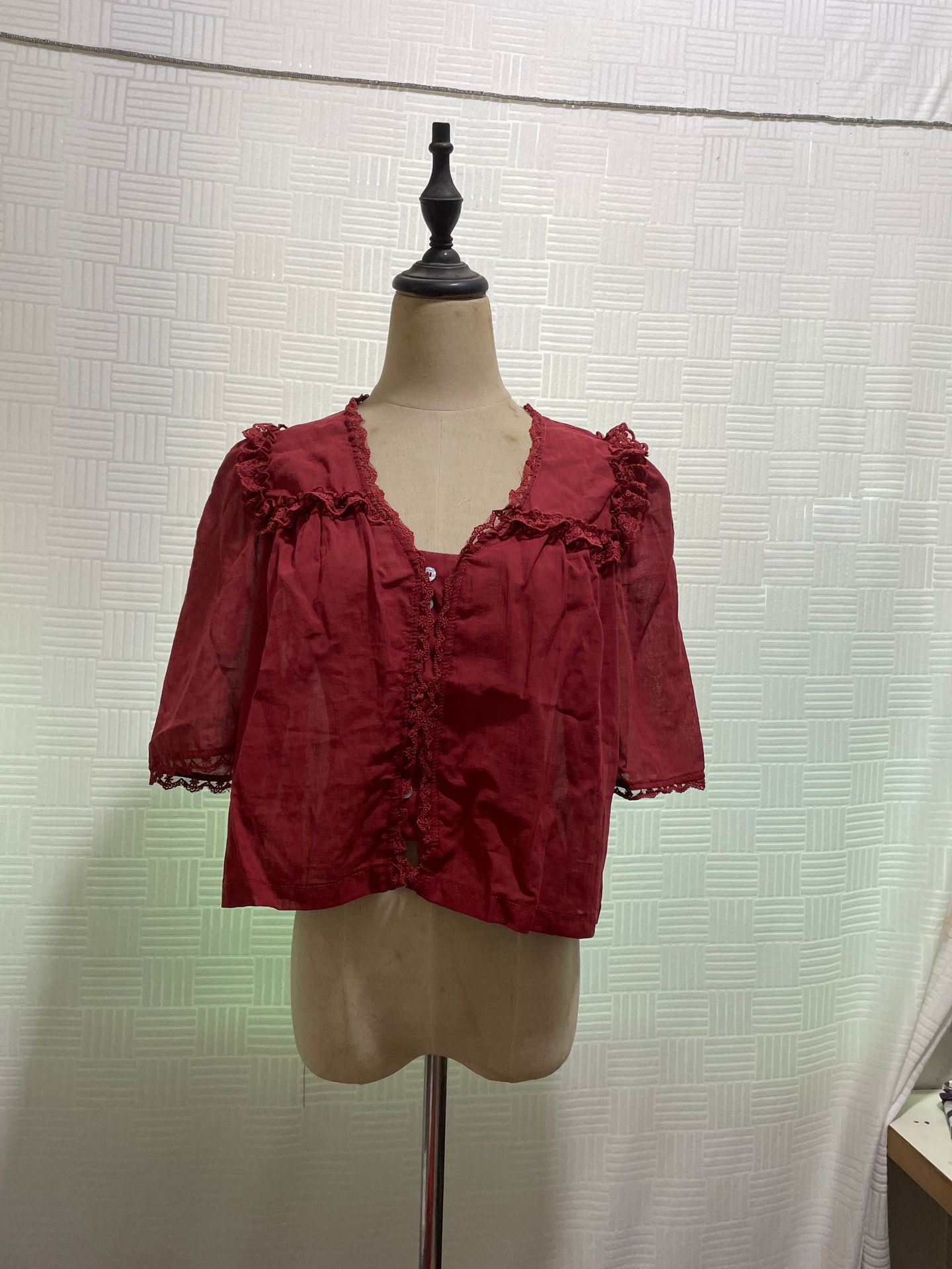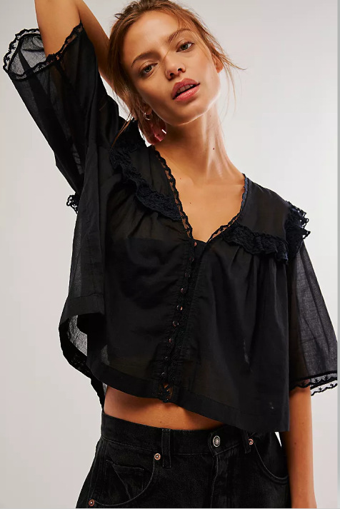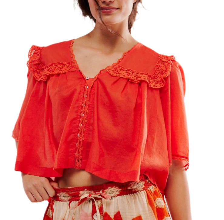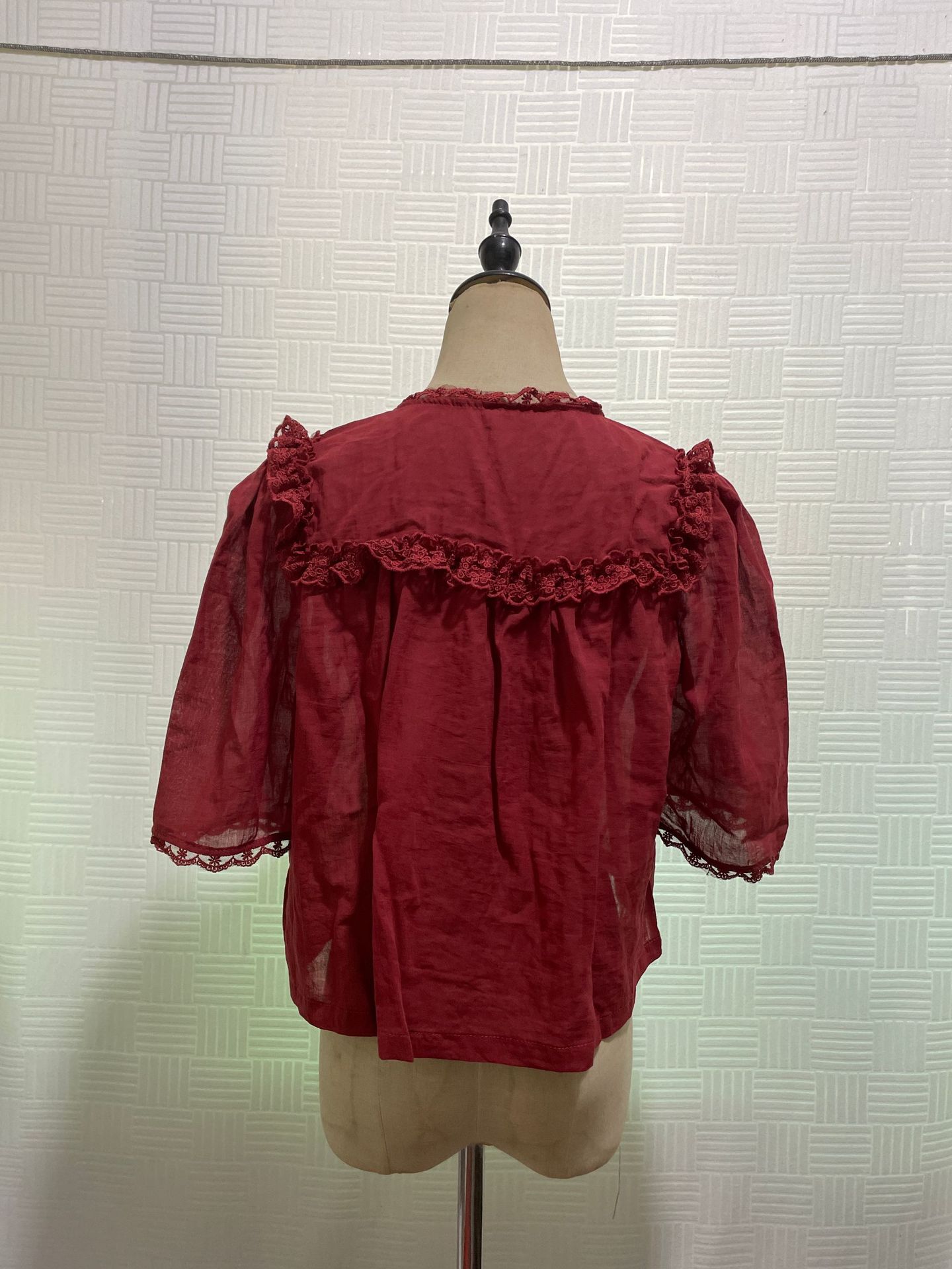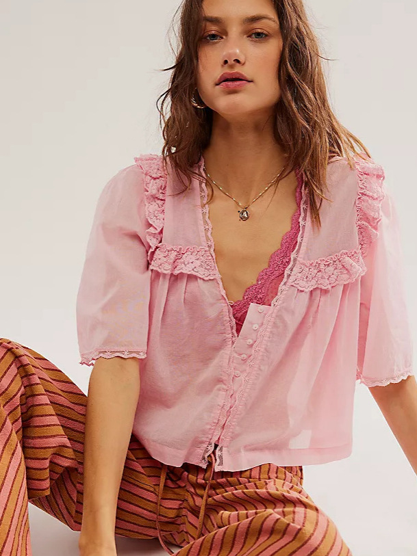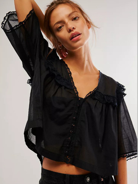 2024 новый Amazon Европа и США трансграничный кружевной воротник чистый хлопок сплошной цвет свободный модный кружевной складчатый топ женский