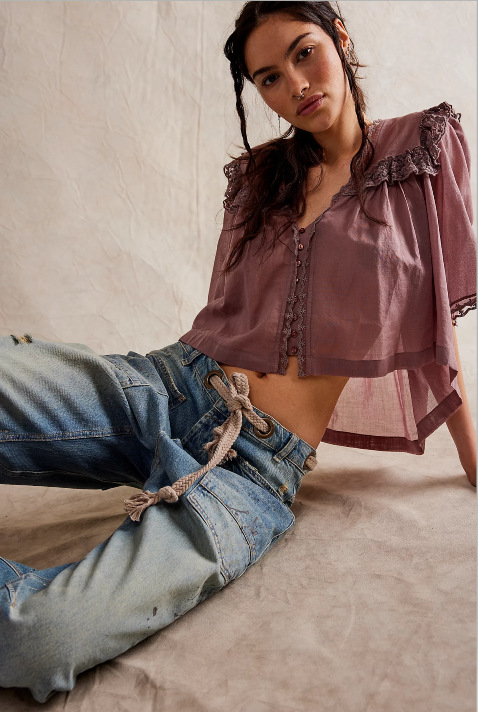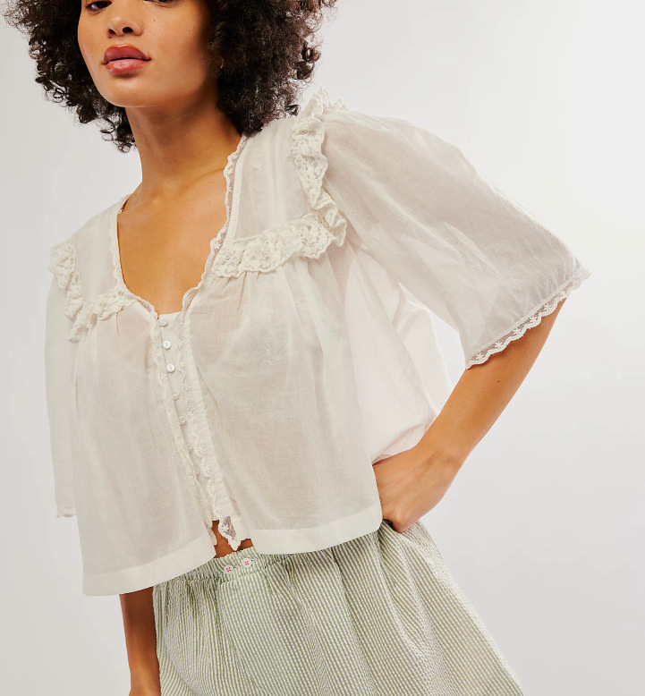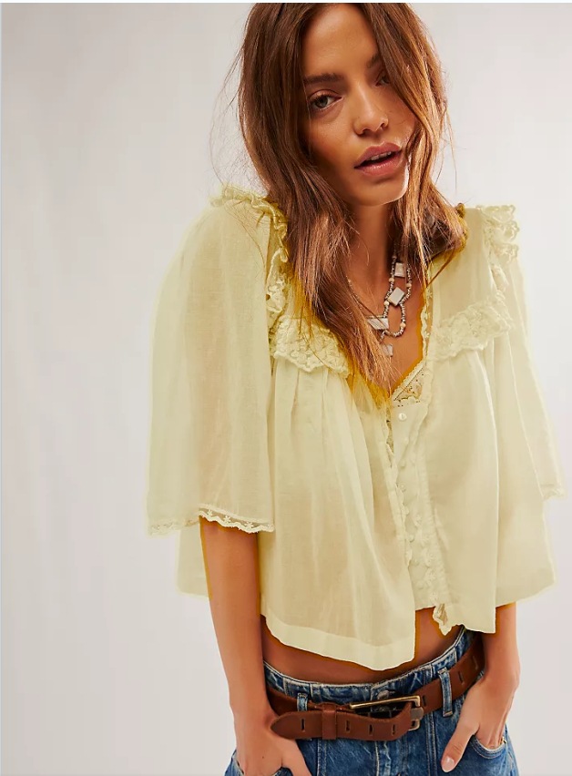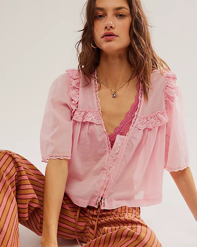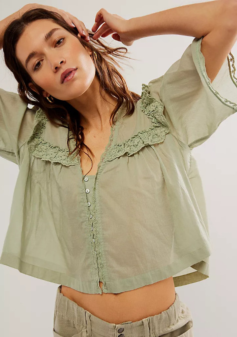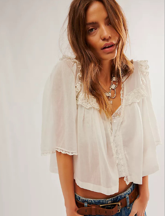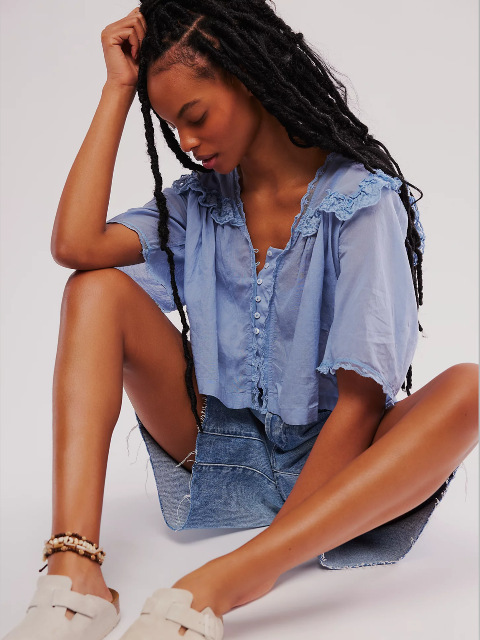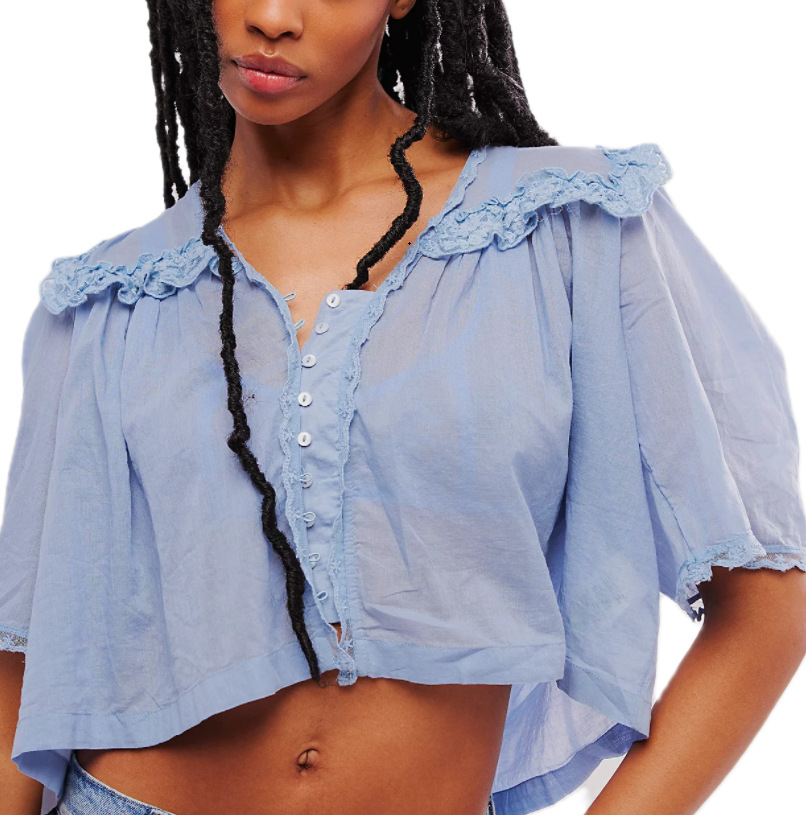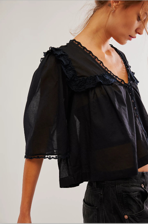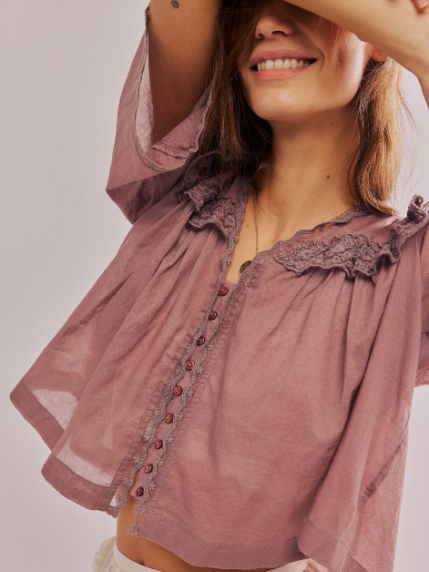 2024 новый Amazon Европа и США трансграничный кружевной воротник чистый хлопок сплошной цвет свободный модный кружевной складчатый топ женский