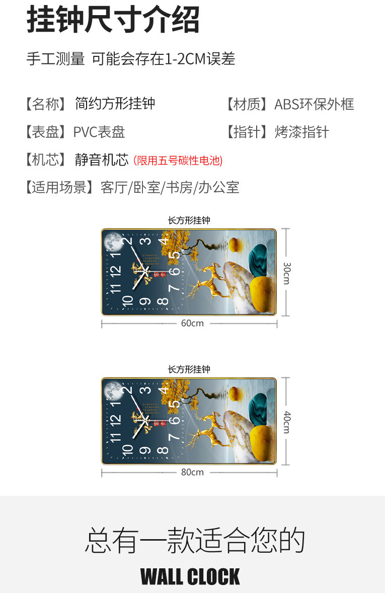Новые прямоугольные настенные часы часы для дома атмосферный офис бесшумный Wall Clock кварцевые часы спот оптом