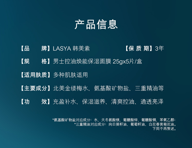 LASYA Мужская маска с контролируемым маслом Huan увлажняющая маска 25g * 5 таблеток HMSDS39645