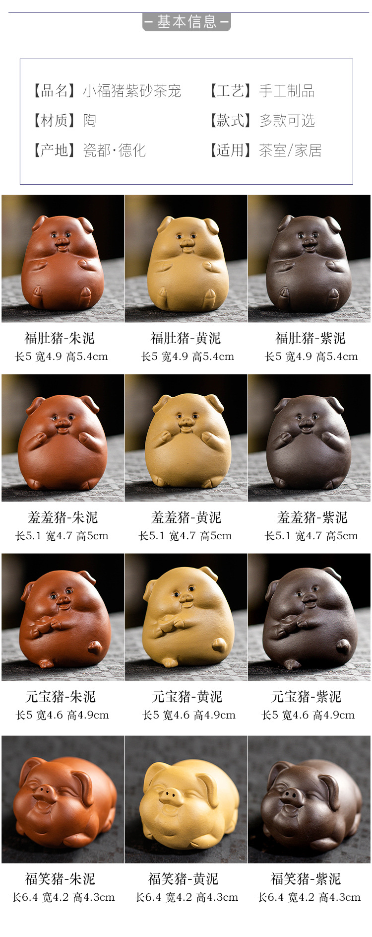 Фу живот свиньи-фиолетовая грязь; Фу живот свинья-киновари; Фу живот свиньи-желтая грязь; Маленькая Фу Свинья-Фиолетовая Грязь; Маленькая Фу Свинья-Шукни; Маленькая Фу Свинья-Желтая Грязь; Свинья слитка-фиолетовая грязь; Свинья слитка-Шинни; Свинья слитка-желтая грязь; Фу Свинья-Фиолетовая грязь; Фу Сяо Свинья-Шучу; Фу Свинья-желтая грязь