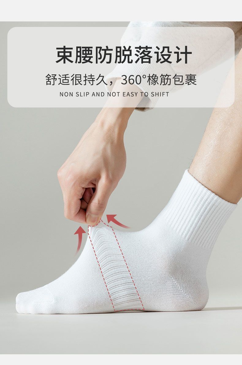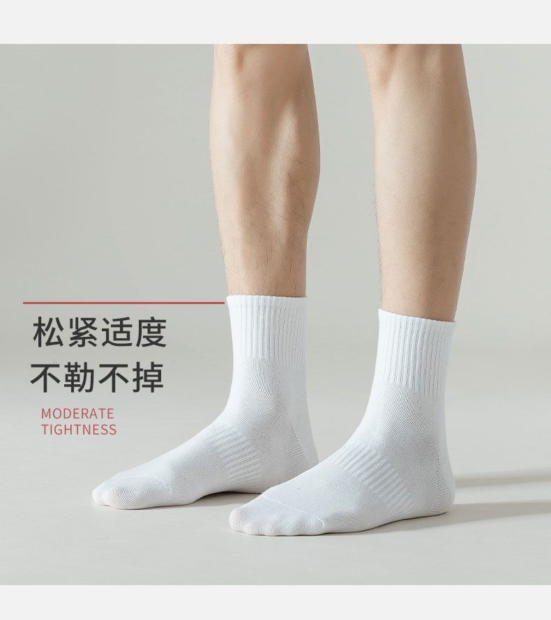 Zhuji Носки мужские белые средние трубки четыре сезона пара против запаха, дышащий пот, спортивные чулки, короткие чулки, хлопчатобумажные мужские чулки