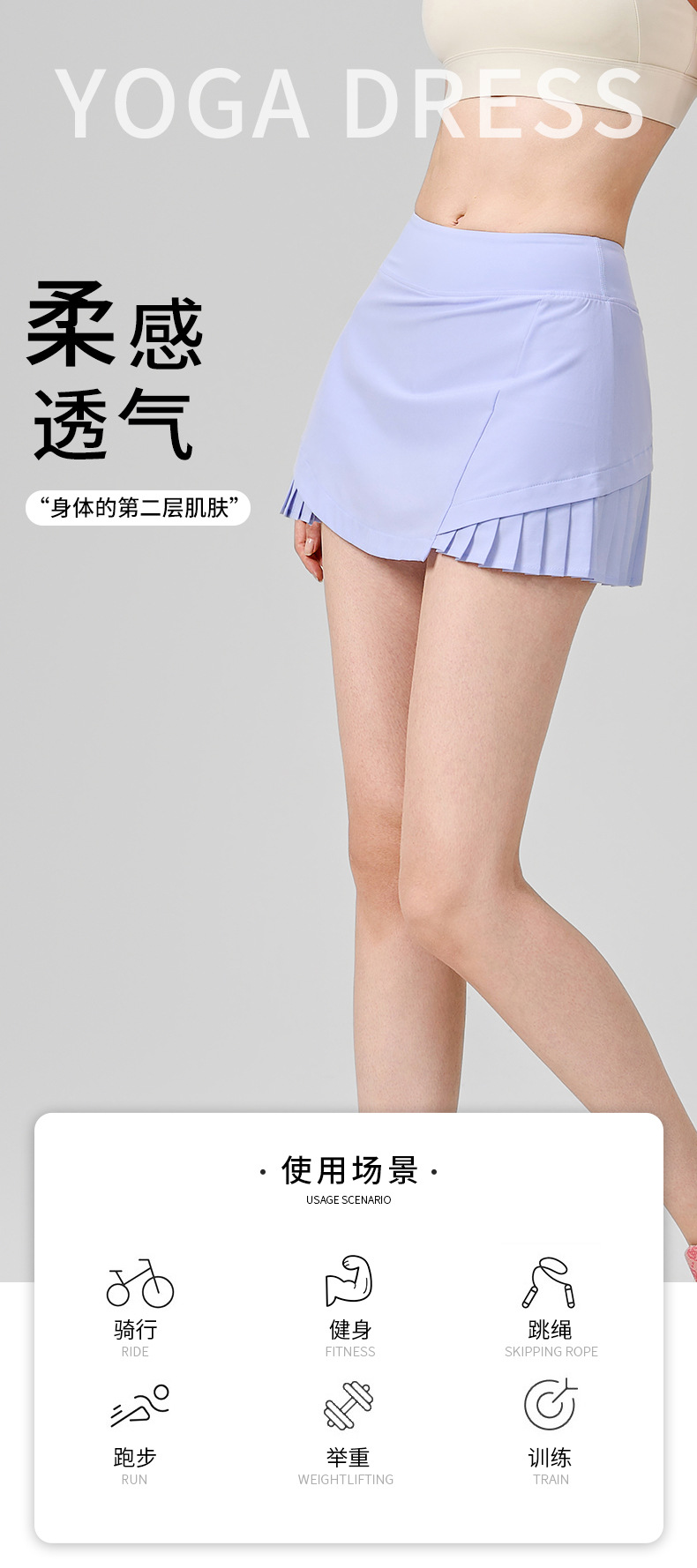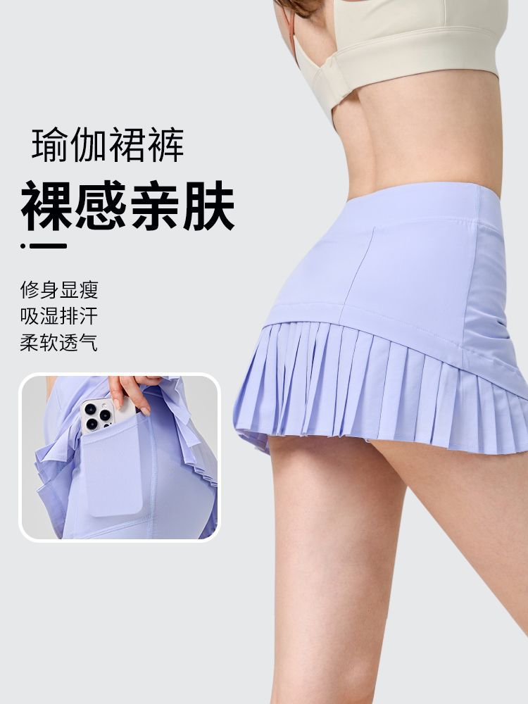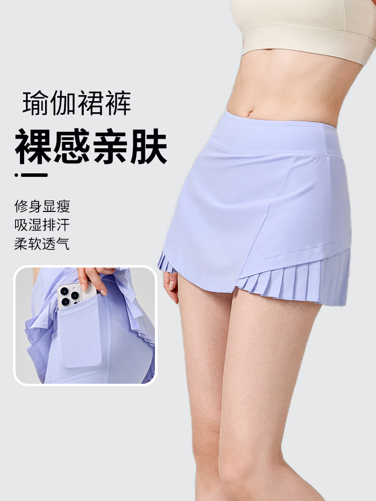 LULU голый гольф теннисная юбка спортивная бег плиссированная юбка поддельные два анти-легкая юбка для йоги