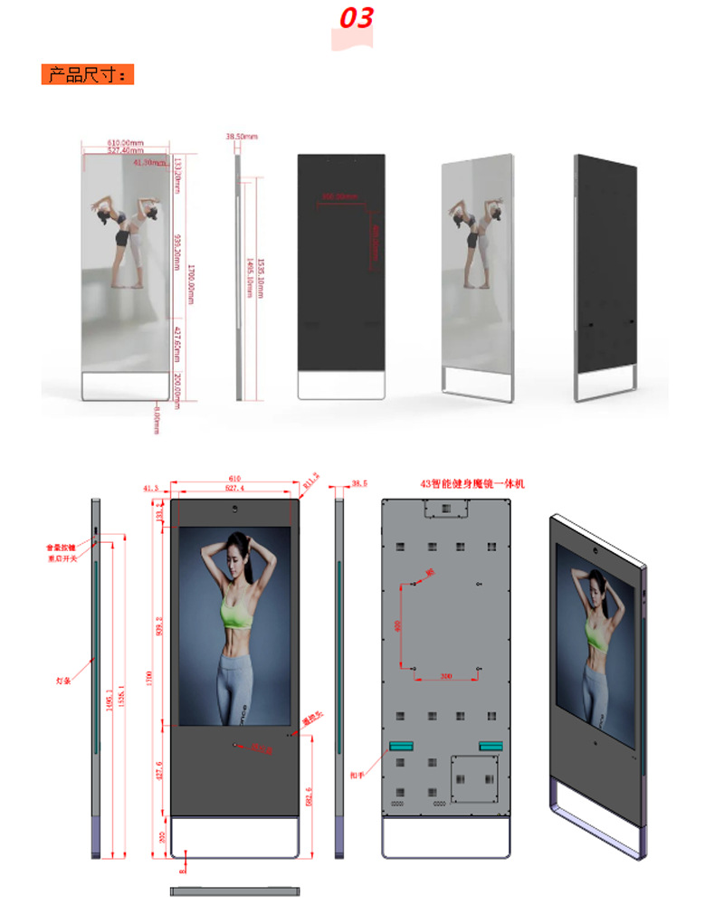 Фитнес-зеркало интеллектуальное волшебное зеркало все в одном дисплей домашнего йоги танцевальное движение вертикальное зеркало