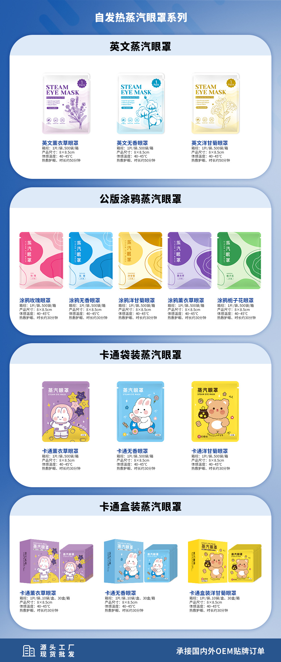Оптовая продажа паровых масок для глаз для внешней торговли, OEM-производство, трансграничная поставка в Европу, Америку, Японию и Корею, самонагревающаяся паровая маска для глаз с лютеином