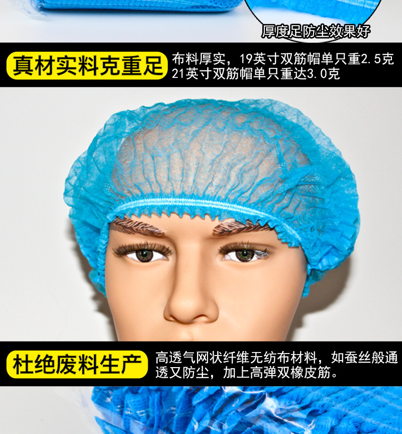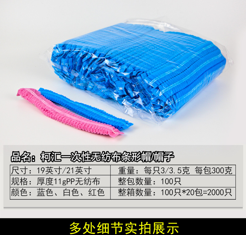 例:蓝色双筋21寸,重量是10g/平方无纺布,100只/包重量约260g
