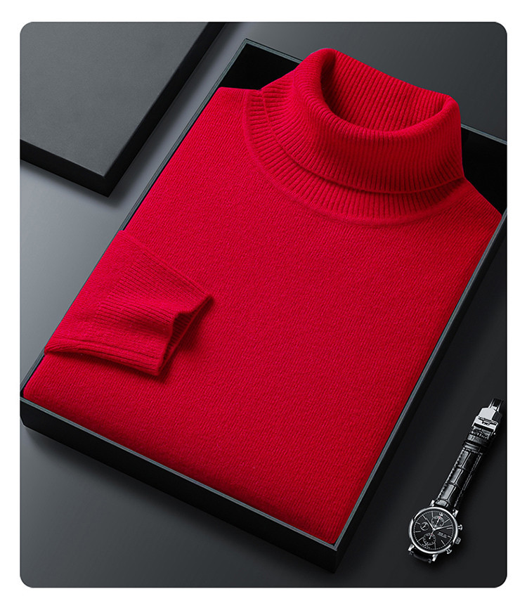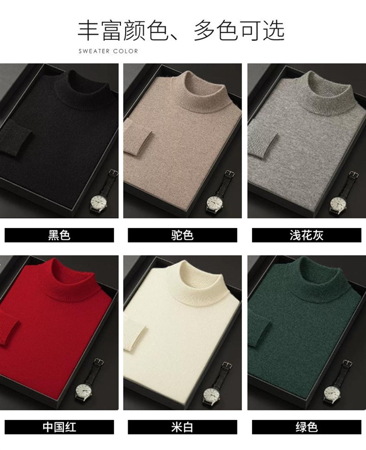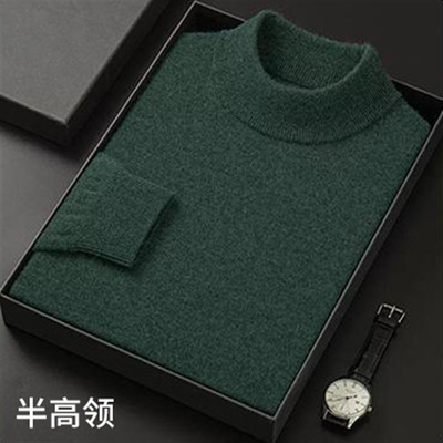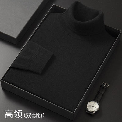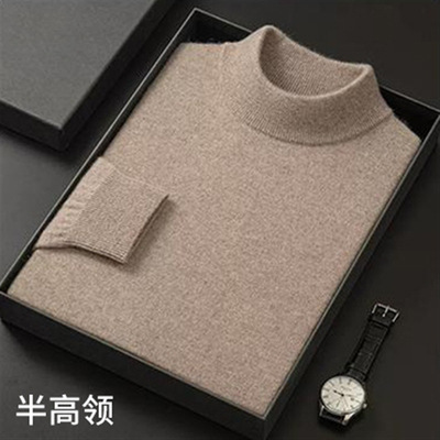 Однотонный облегающий свитер-база, модный трансграничный свитер с двойным воротником-стойкой из шерсти для мужчин, мягкий и теплый трикотаж для осени и зимы.