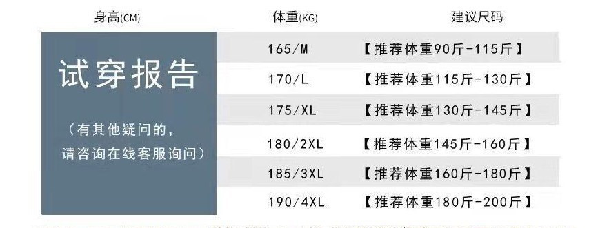 Рекомендация M/105 45-57.5kg; L/110 рекомендации 57.5-65kg; XL/115 рекомендации 65-70kg; 2XL/120 рекомендуется 70-77.5kg; 3XL/125 рекомендуется 155/ 85kg; 4XL/130 рекомендуется 85-95kg