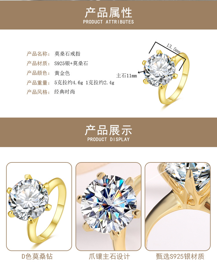 Douyin Live новый европейский и американский s925 стерлингового серебра желто-золотое кольцо Мосанг бриллиантовое кольцо пара кольцо женское кольцо трансграничное специальное предложение