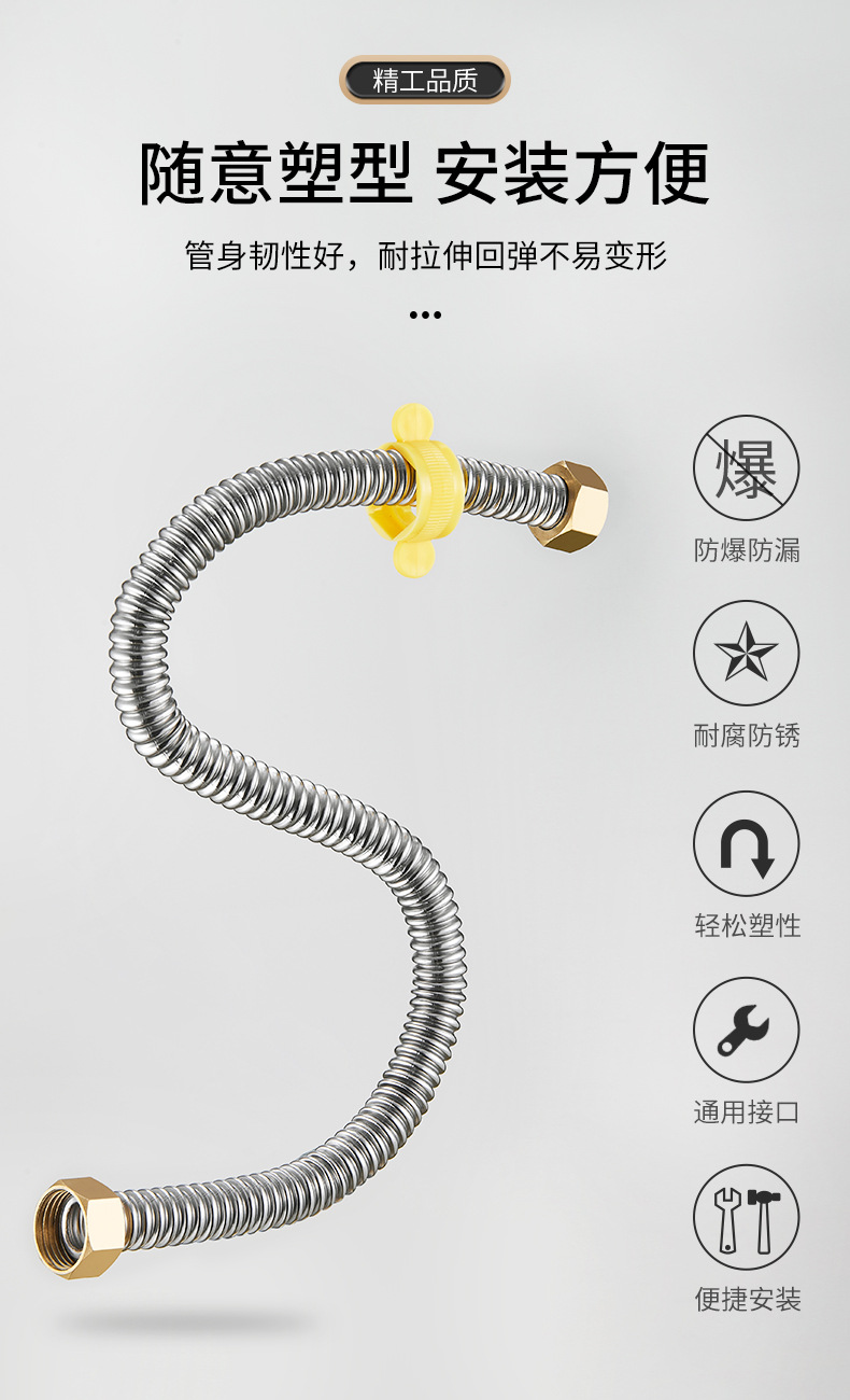 4-точечная гофрированная труба из нержавеющей стали с входом и выходом, взрывозащищенный бытовой металлический шланг с утолщенной медной крышкой, взрывозащищенный под высоким давлением.