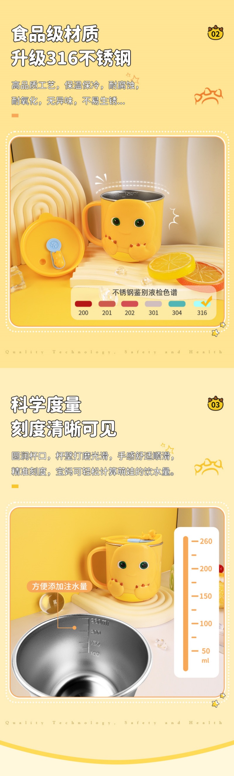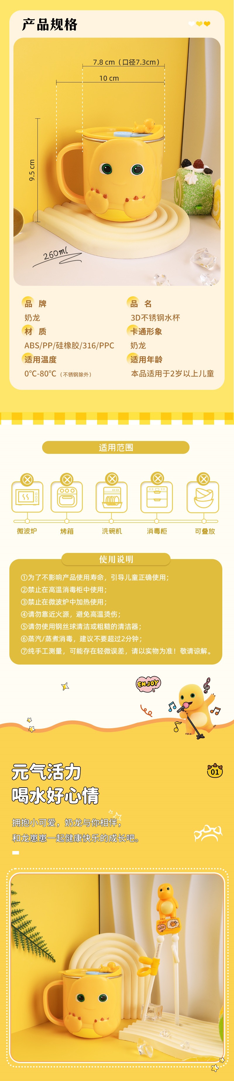 Молочный дракон детский стакан для воды для домашнего использования 316 стальной детской бутылки молочный стакан с соломой