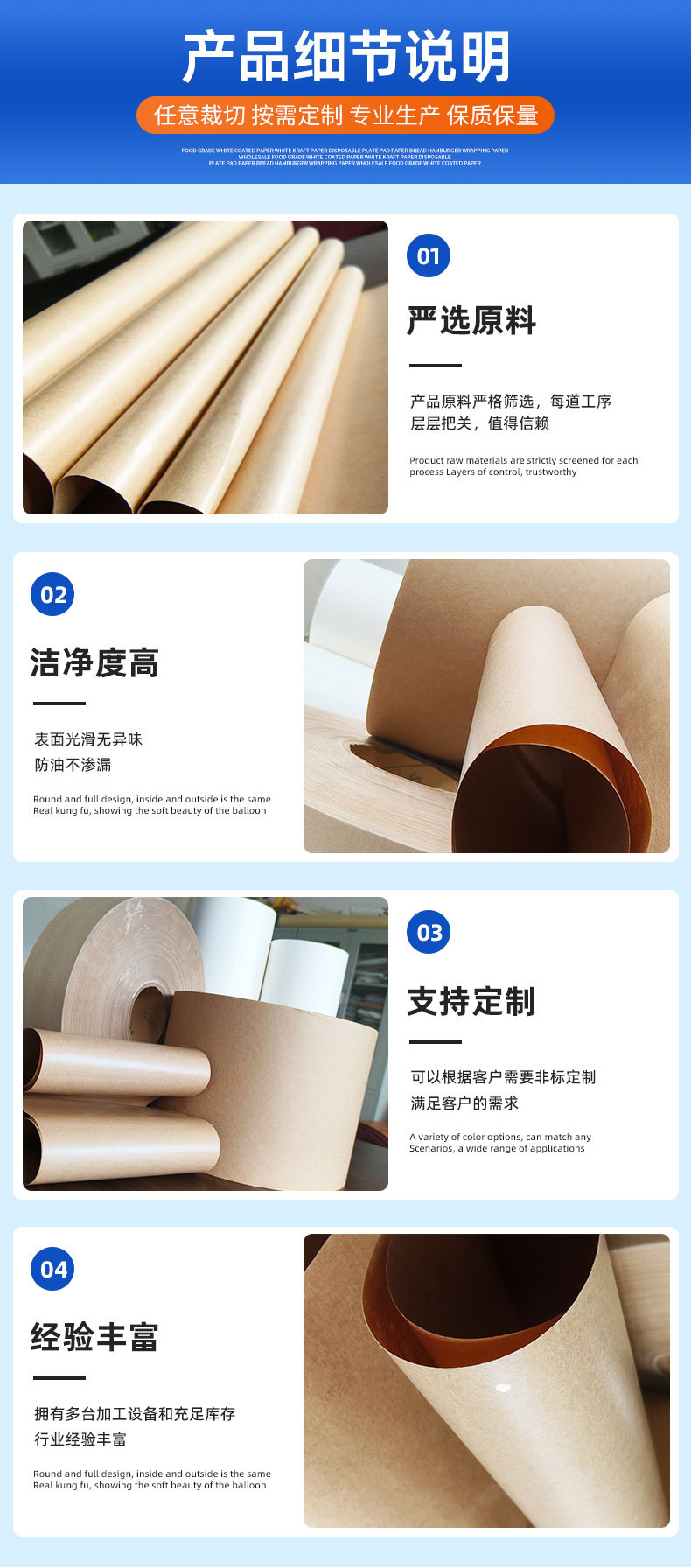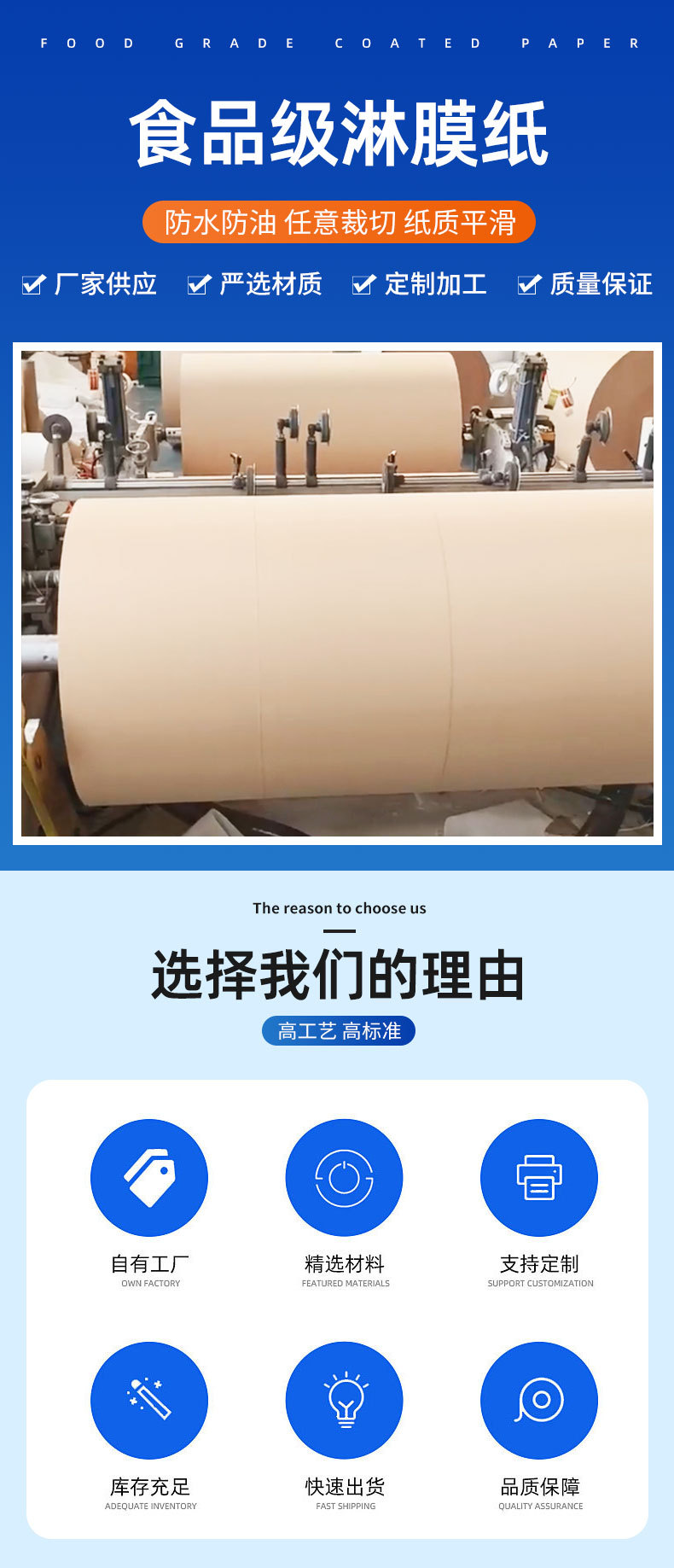 专业研发和生产:各类食品级淋膜纸、非食品级淋膜纸、离型纸以及特殊纸张。