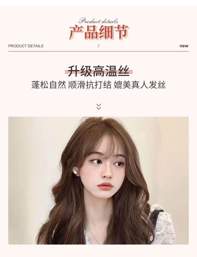 Парик женский длинный вьющиеся волосы челка модная большая волна пушистый симулятор человеческого волоса сеть красная живая с украшениями
