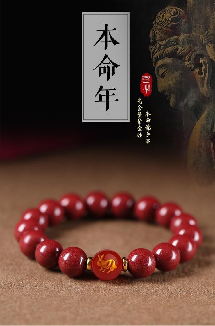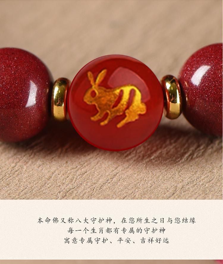 2023 год Кролика Год Неннатальный браслет киновари Женская киноварь Двенадцать Зодиака Ручной Мужской Подарок