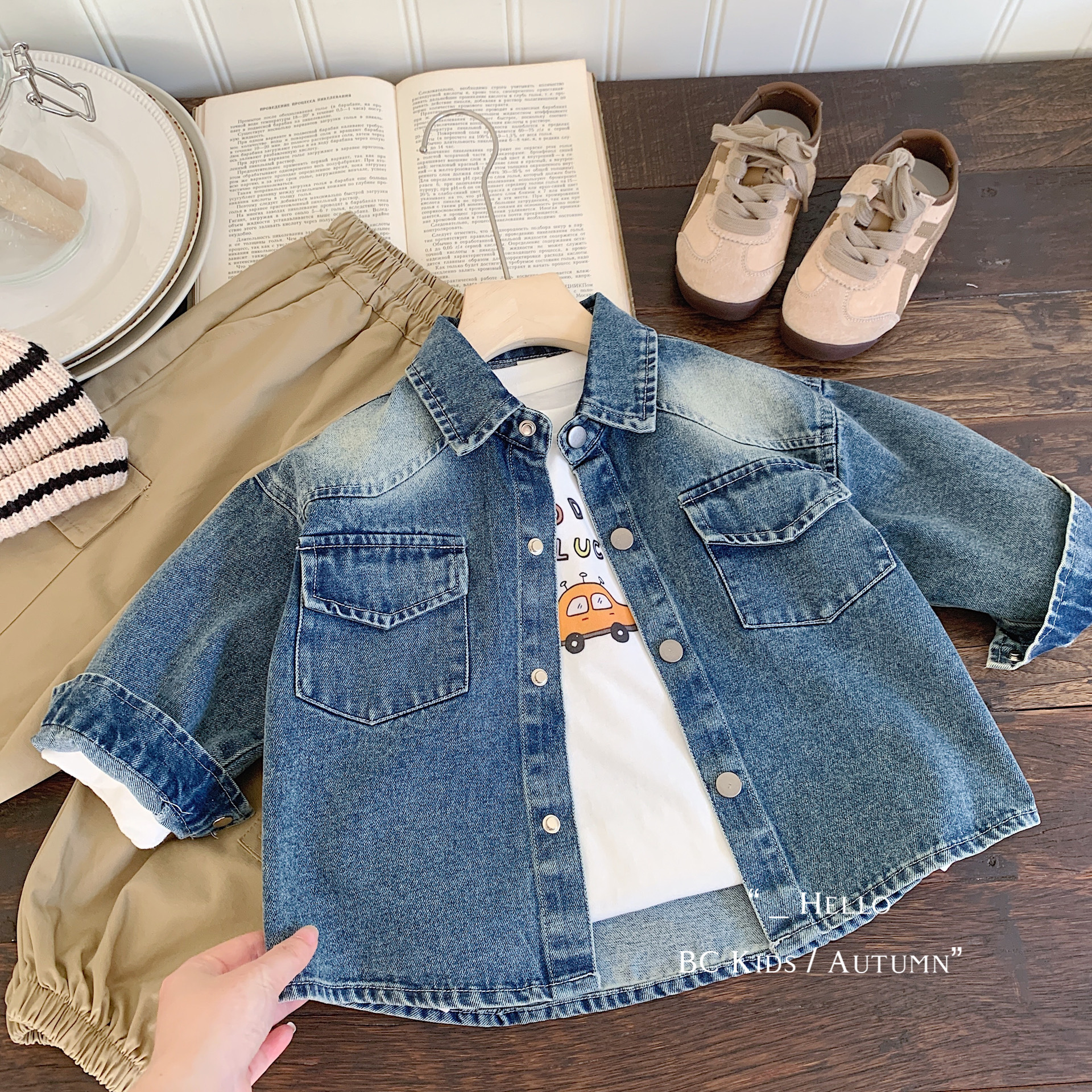 Детская джинсовая рубашка Bangcheng, осень 2021, новинка, однотонная детская модная универсальная куртка маленького и среднего размера, рубашка G0317