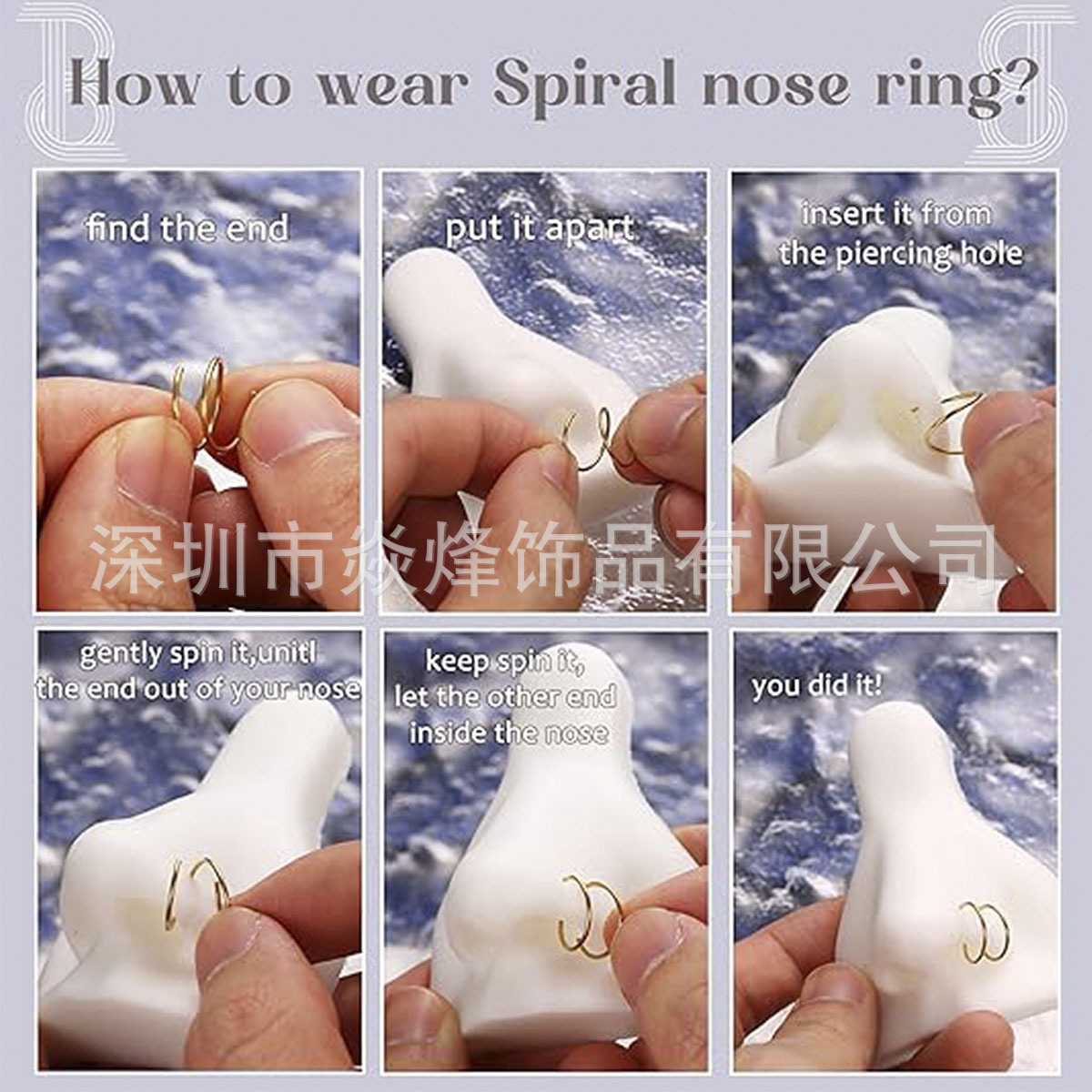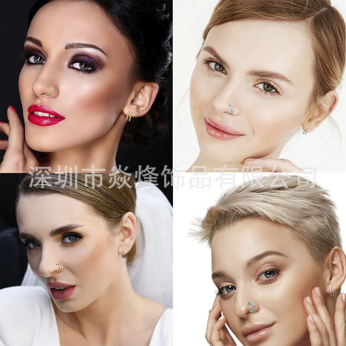 Нержавеющая сталь двухслойный C-образный рыболовный крючок пружинный тип носового кольца серьги губное кольцо мужские и женские универсальные пирсинг ювелирная фабрика