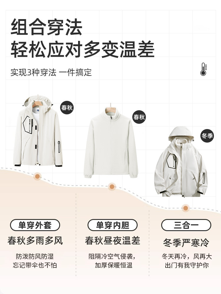 Мужская куртка, съемная ветрозащитная и водонепроницаемая уличная свободная дышащая альпинистская куртка «три в одном», модная женская куртка