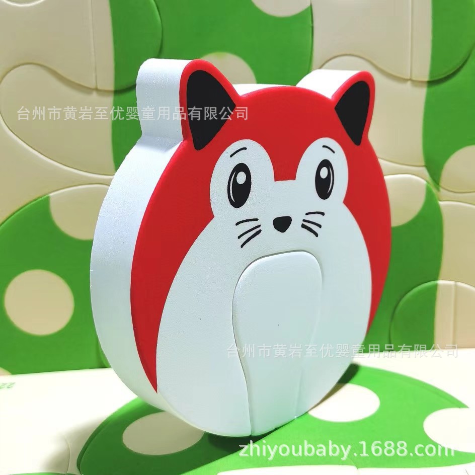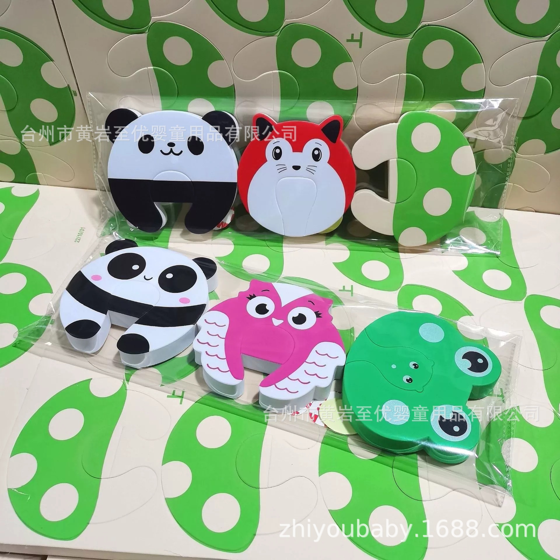 панда с большими глазами; панда с маленькими глазами; белая овца; красная лиса; желтый цыпленок; зеленая лягушка; светло-зеленый гриб; синяя мышь; розовая сова
