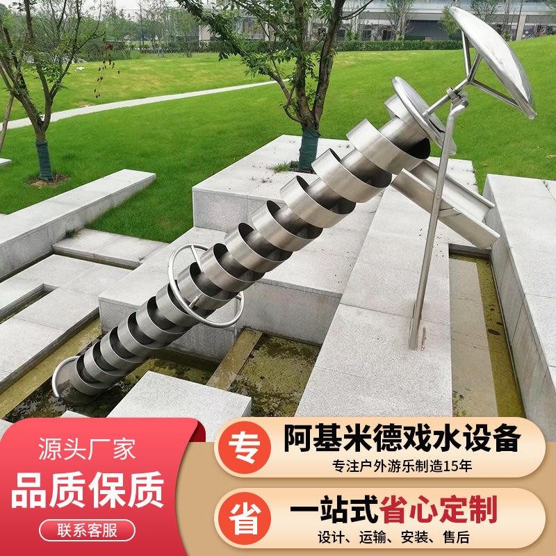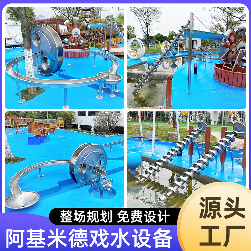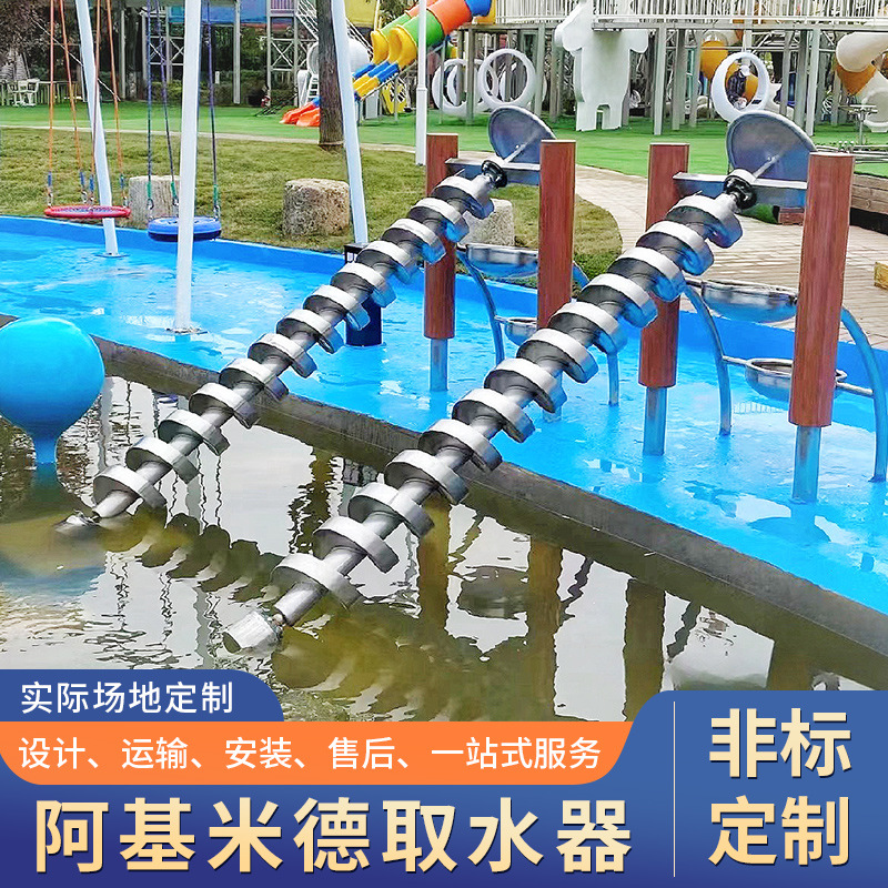Детская игровая площадка на открытом воздухе с водным аттракционом «Архимед», из нержавеющей стали, для игр с песком и водой.