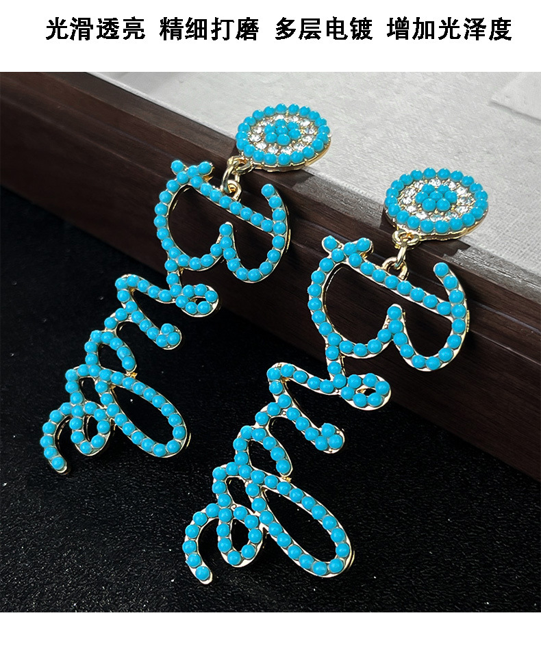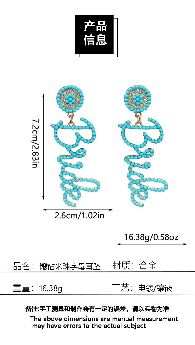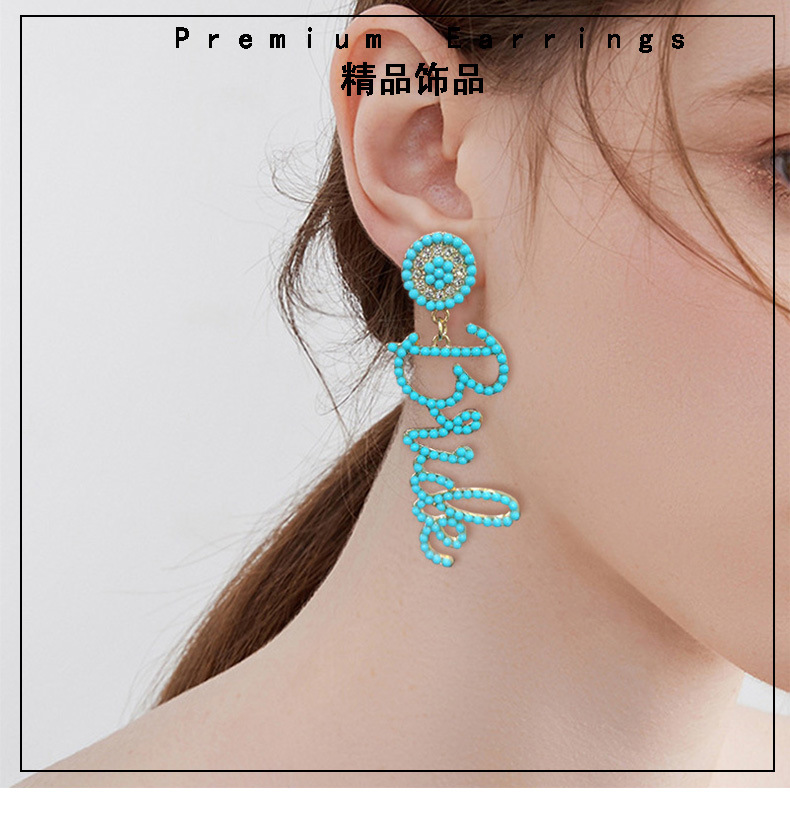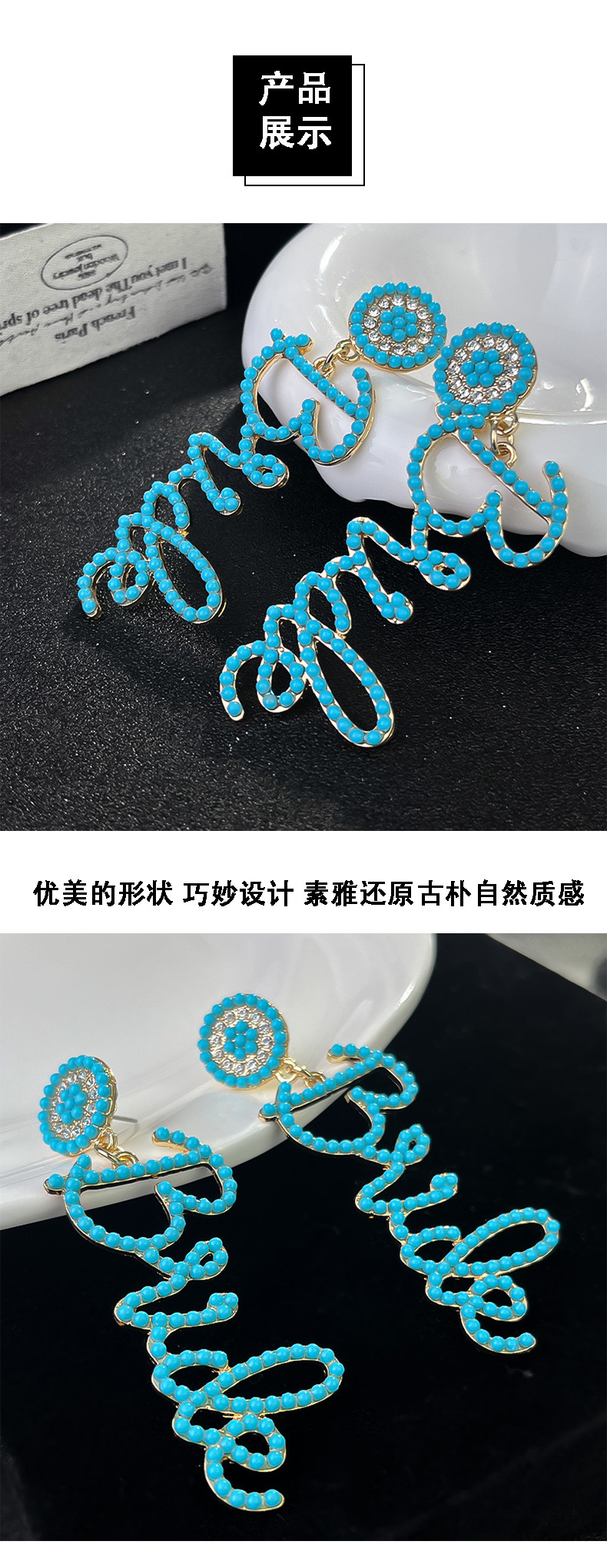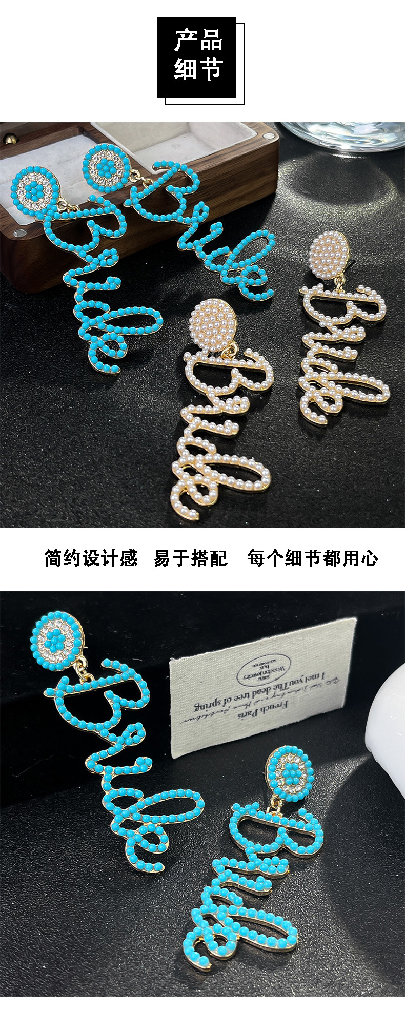 Свадебные серьги оптом: новый стиль, экстравагантный дизайн с рисовыми бусинами и английскими буквами, из сплава.